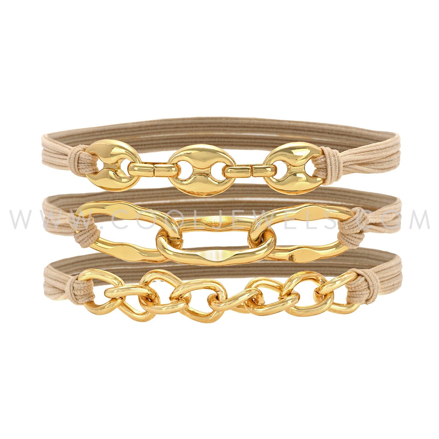 BEIGE STRETCH BRACELET HAIR TIES WITH GOLD CHAINS