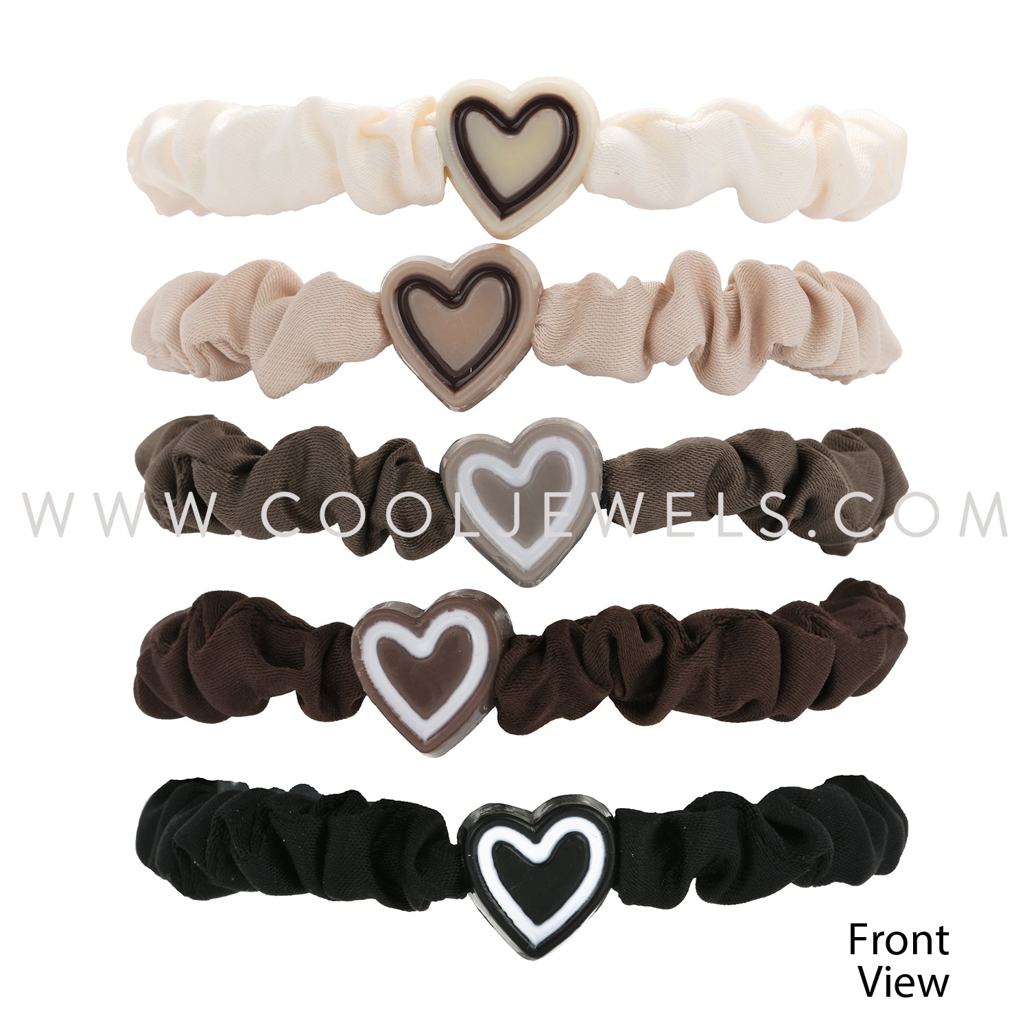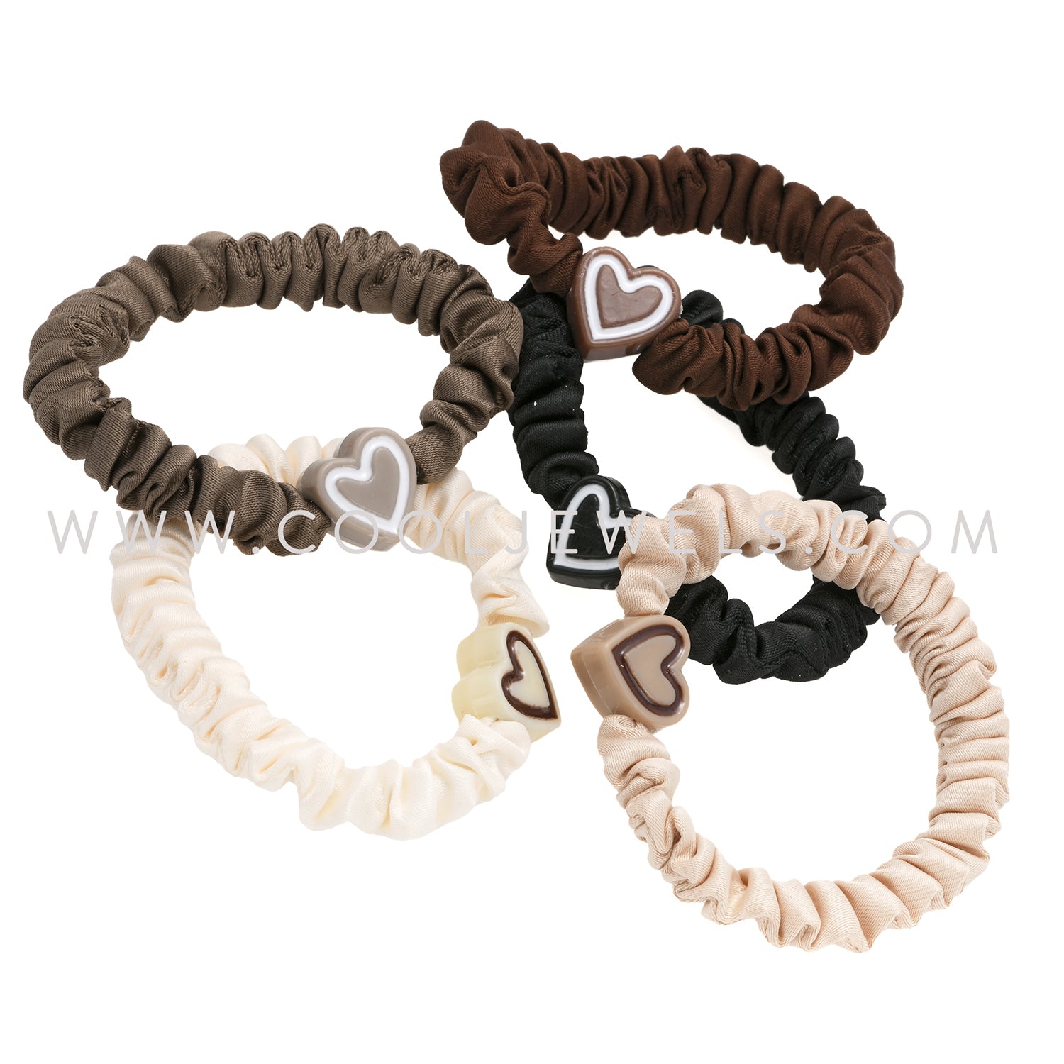 (SET OF 5) PONY TAIL HOLDERS WITH HEARTS - ASSORTED