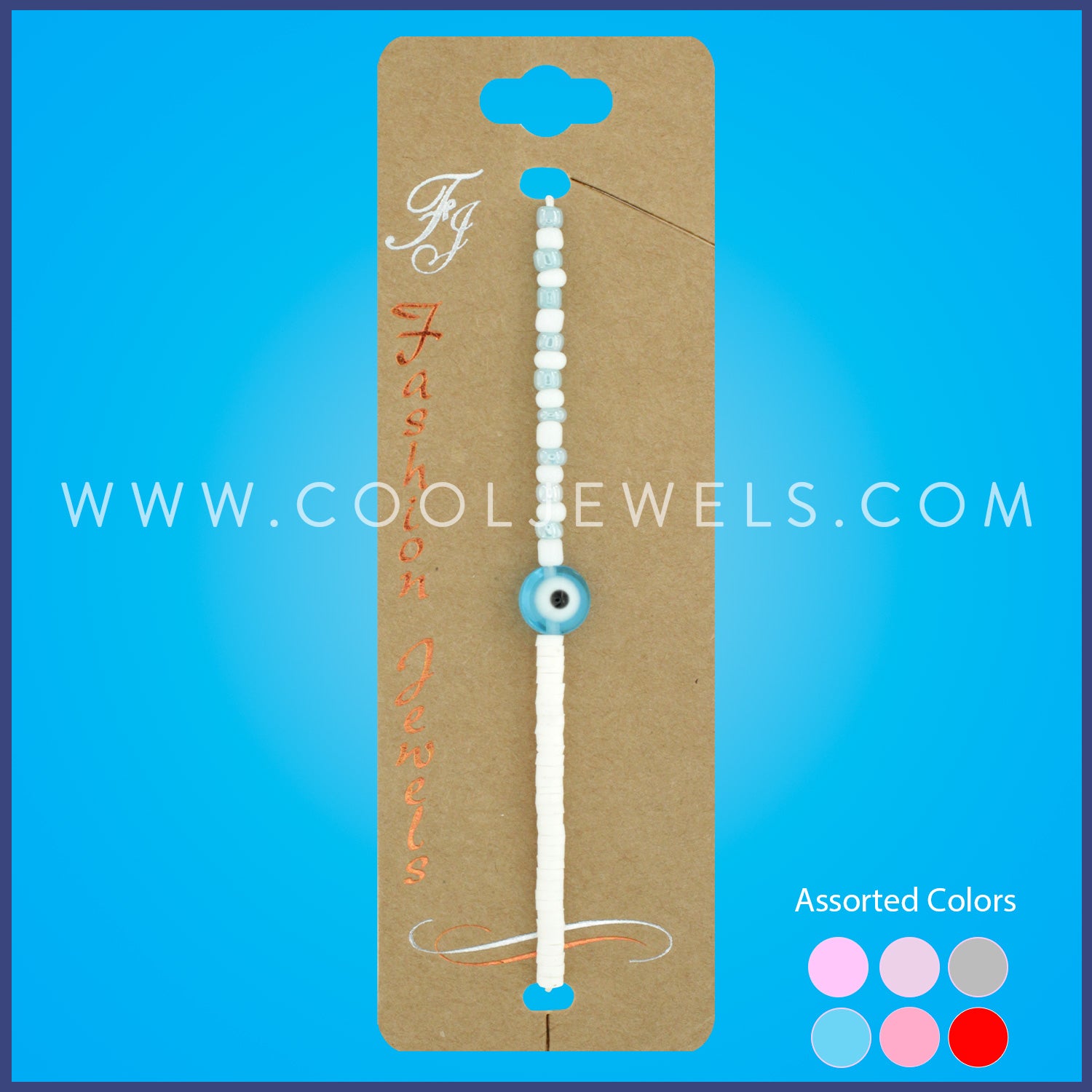STRING SLIDER BRACELET WITH FIMO & EVIL EYE BEAD ASSORTED - CARDED