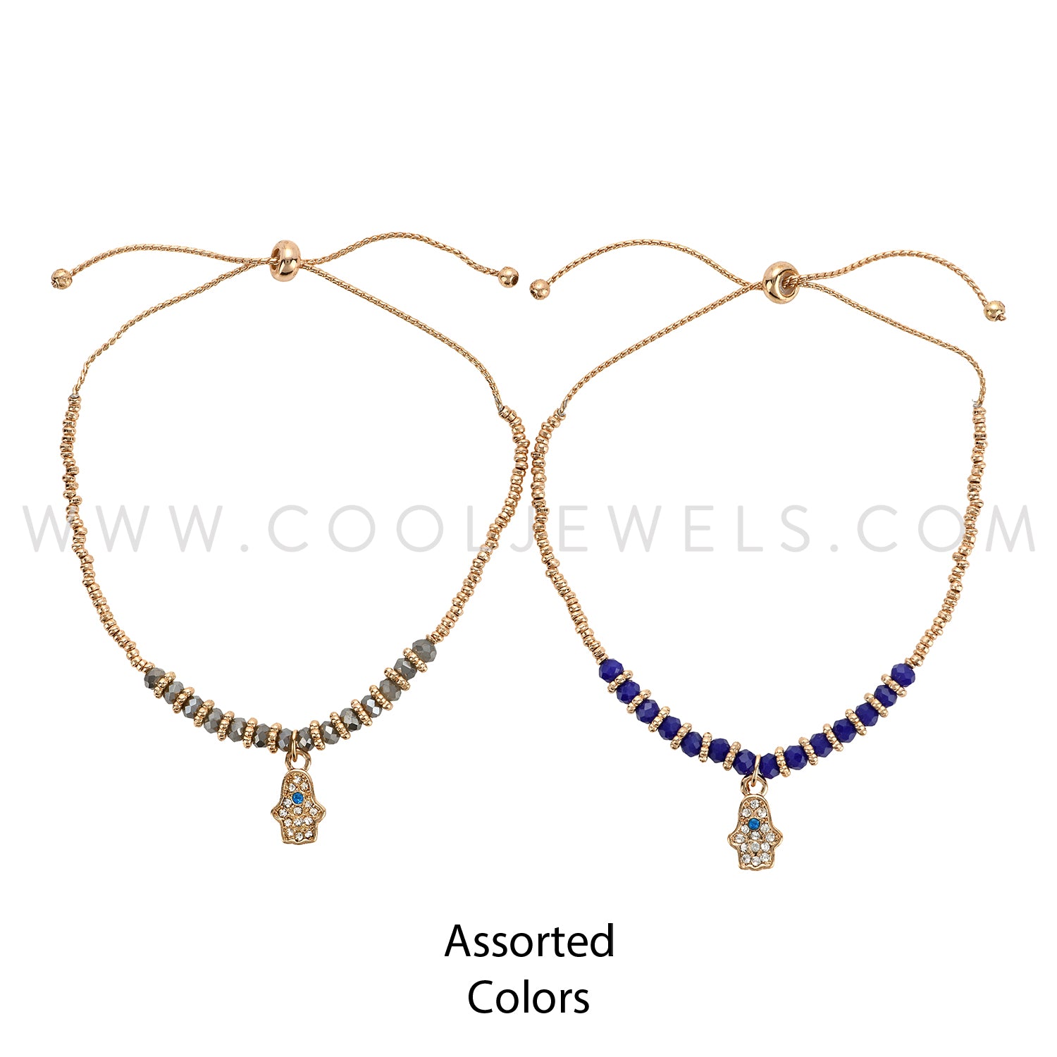 Assorted Rhinestone Hamsa Hand & Crystal Beaded Bracelet / Anklet