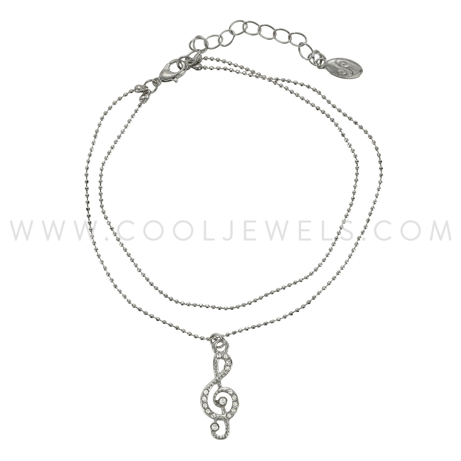 LAYERED DC BALL CHAIN ANKLET WITH RHINESTONE MUSIC NOTE