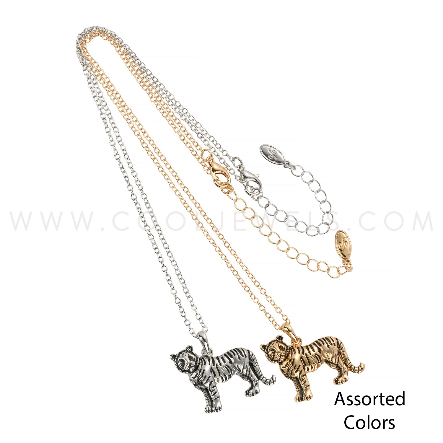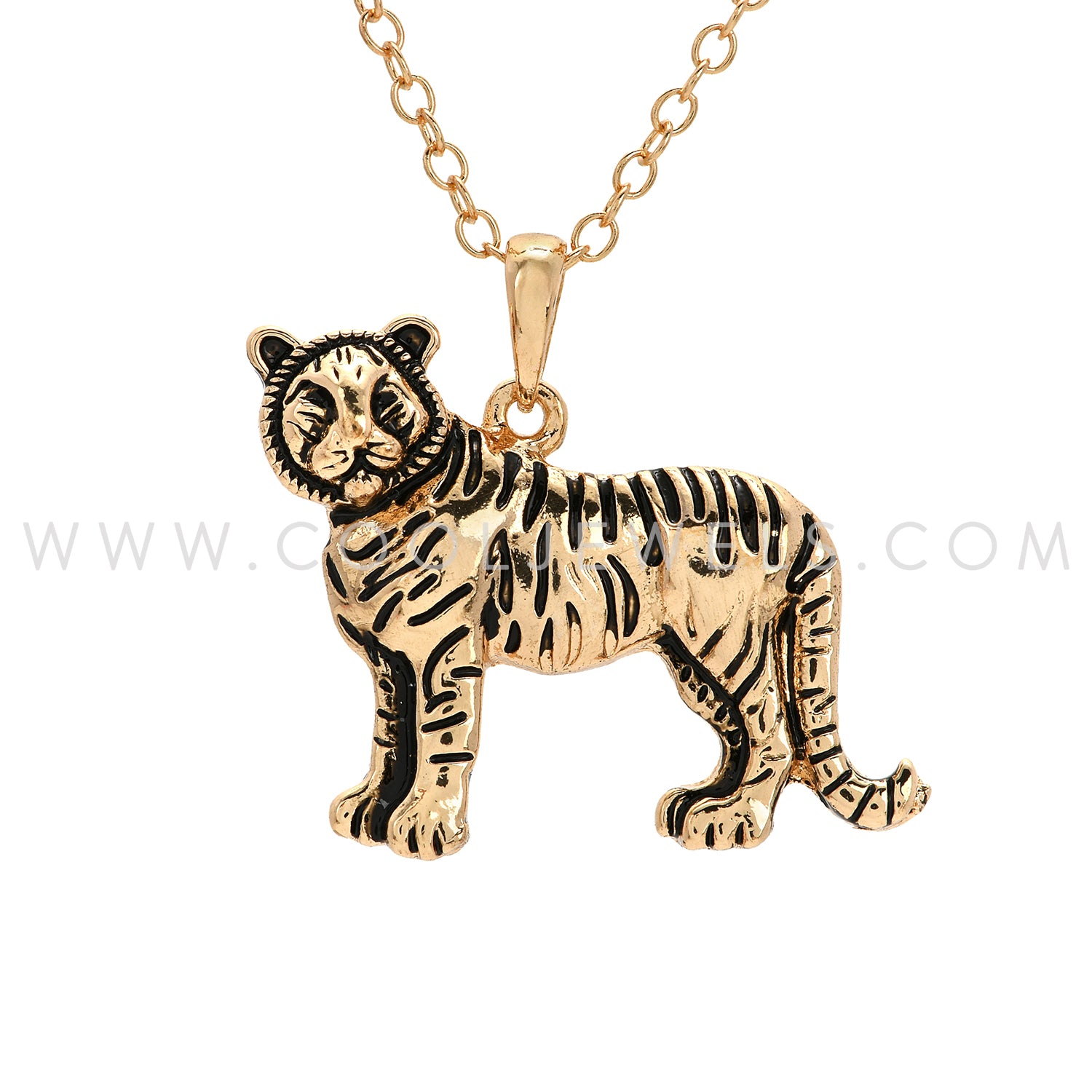 LINK CHAIN NECKLACE WITH TIGER PENDANT - ASSORTED