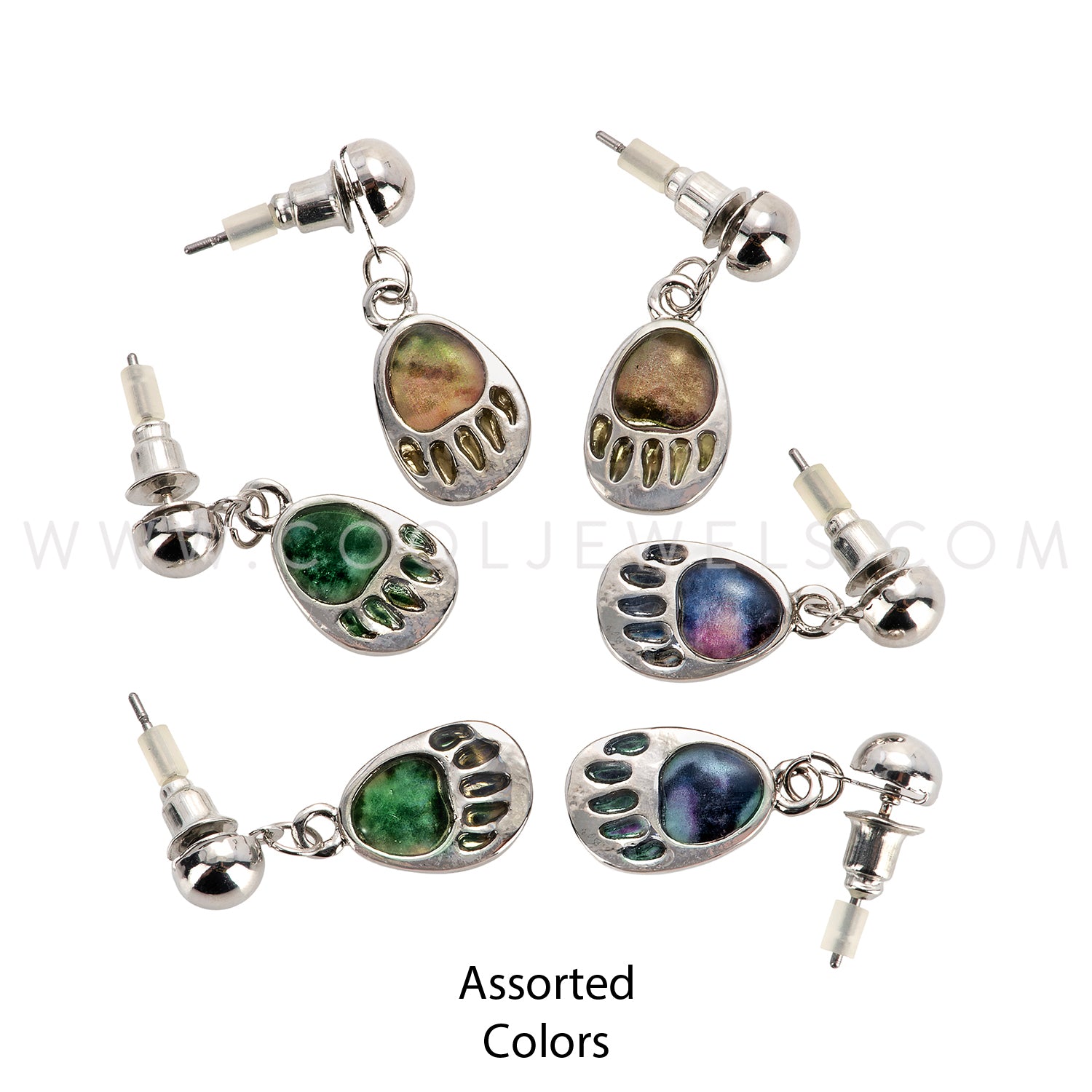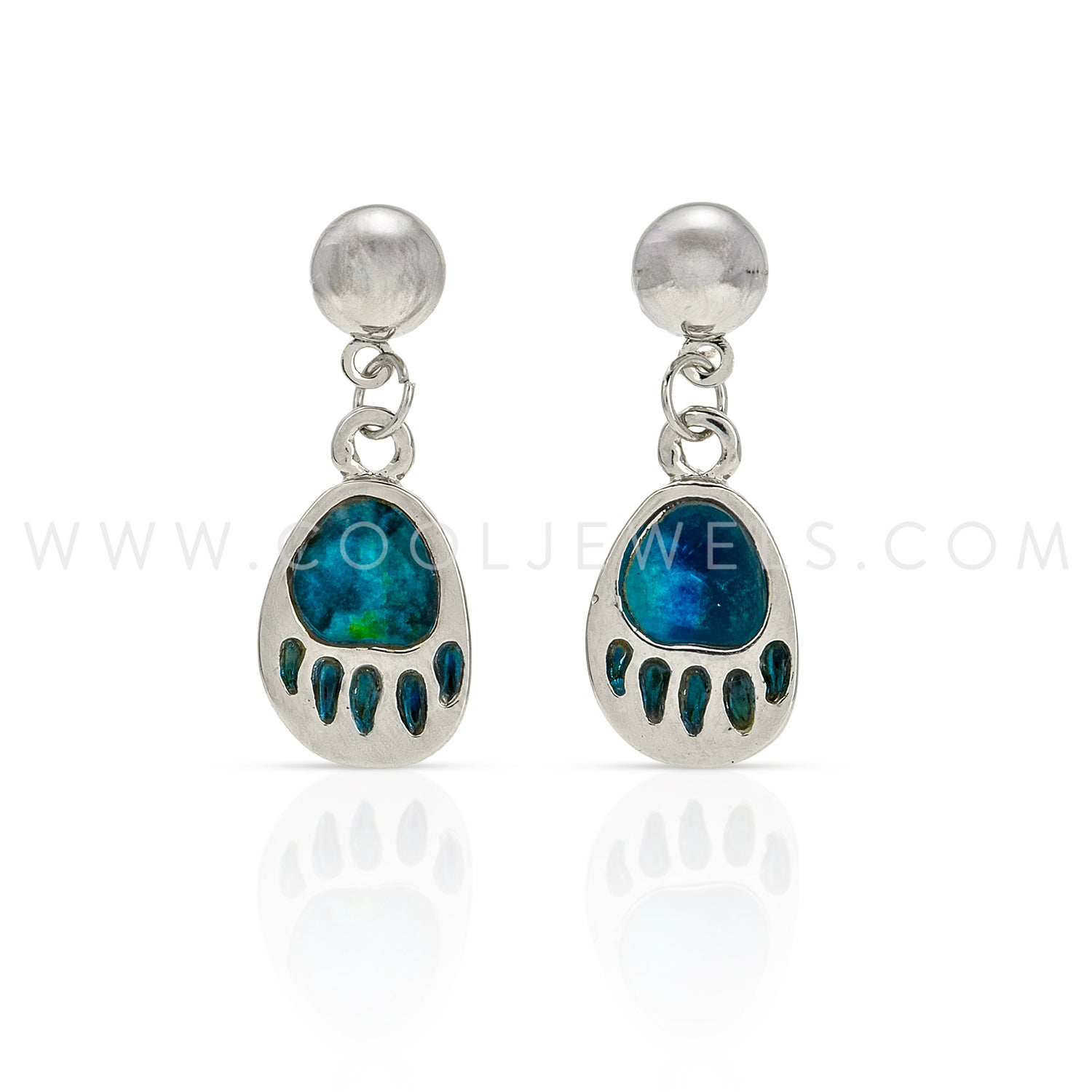 These cute Paua Shell Bear Paw Post Earrings features a pair of paua shell bear paw pendant post earrings.