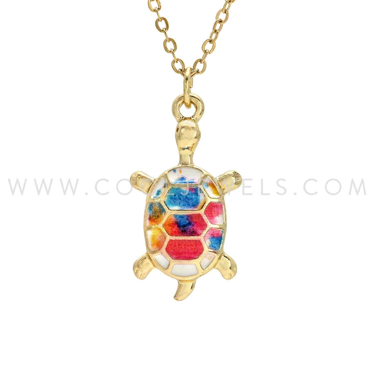 CHAIN NECKLACE WITH MULTI-COLOR TURTLE PENDANT