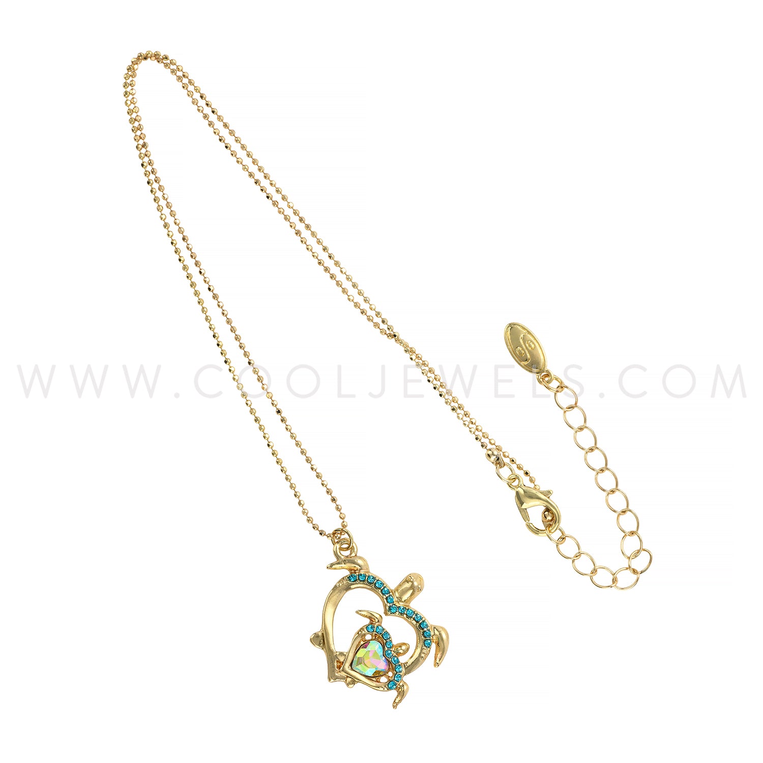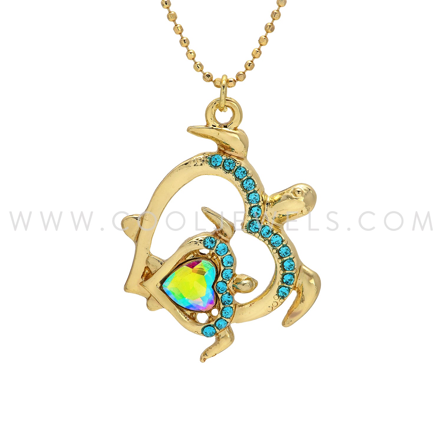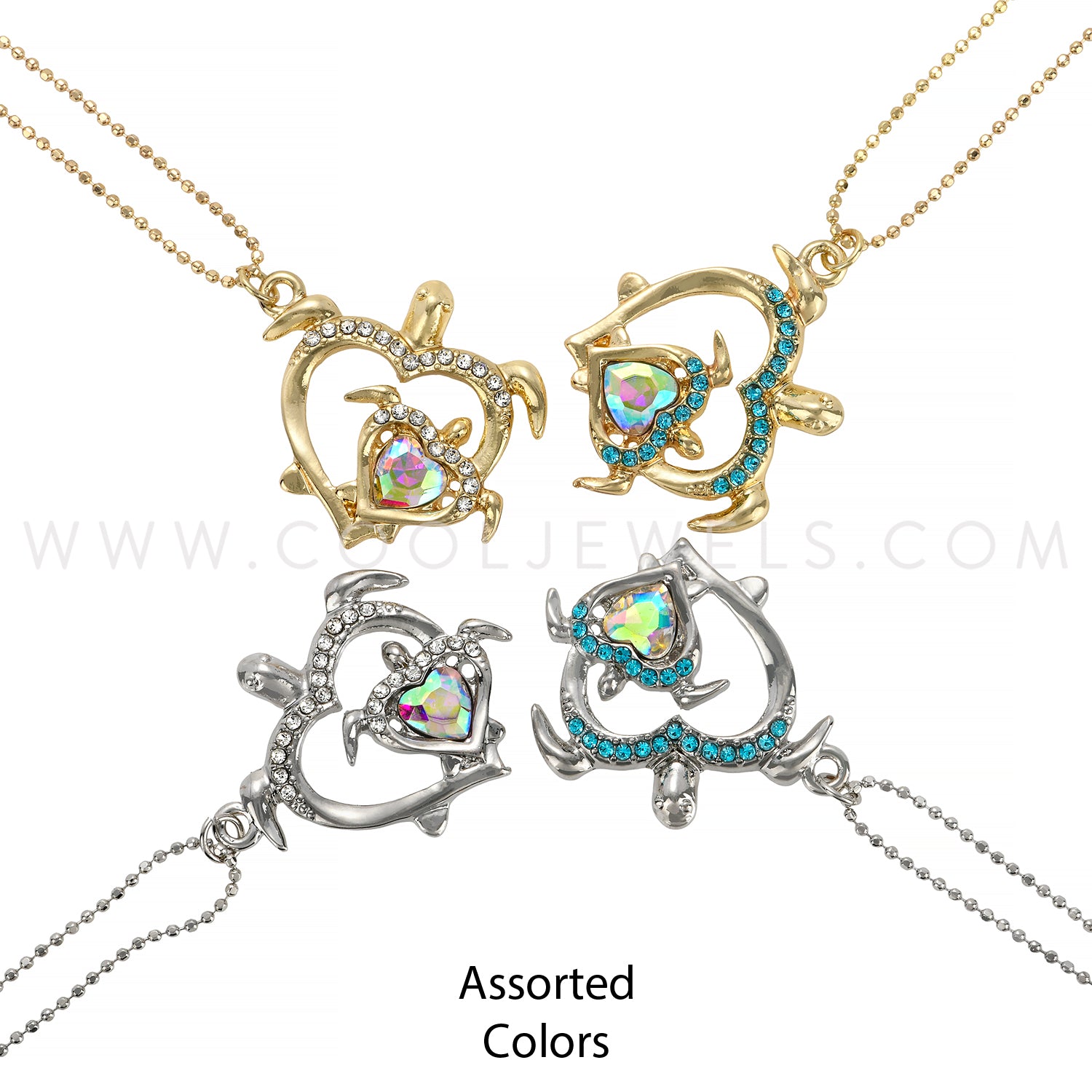 BALL CHAIN NECKLACEC WITH RHINESTONE TURTLE PENDANT - ASSORTED