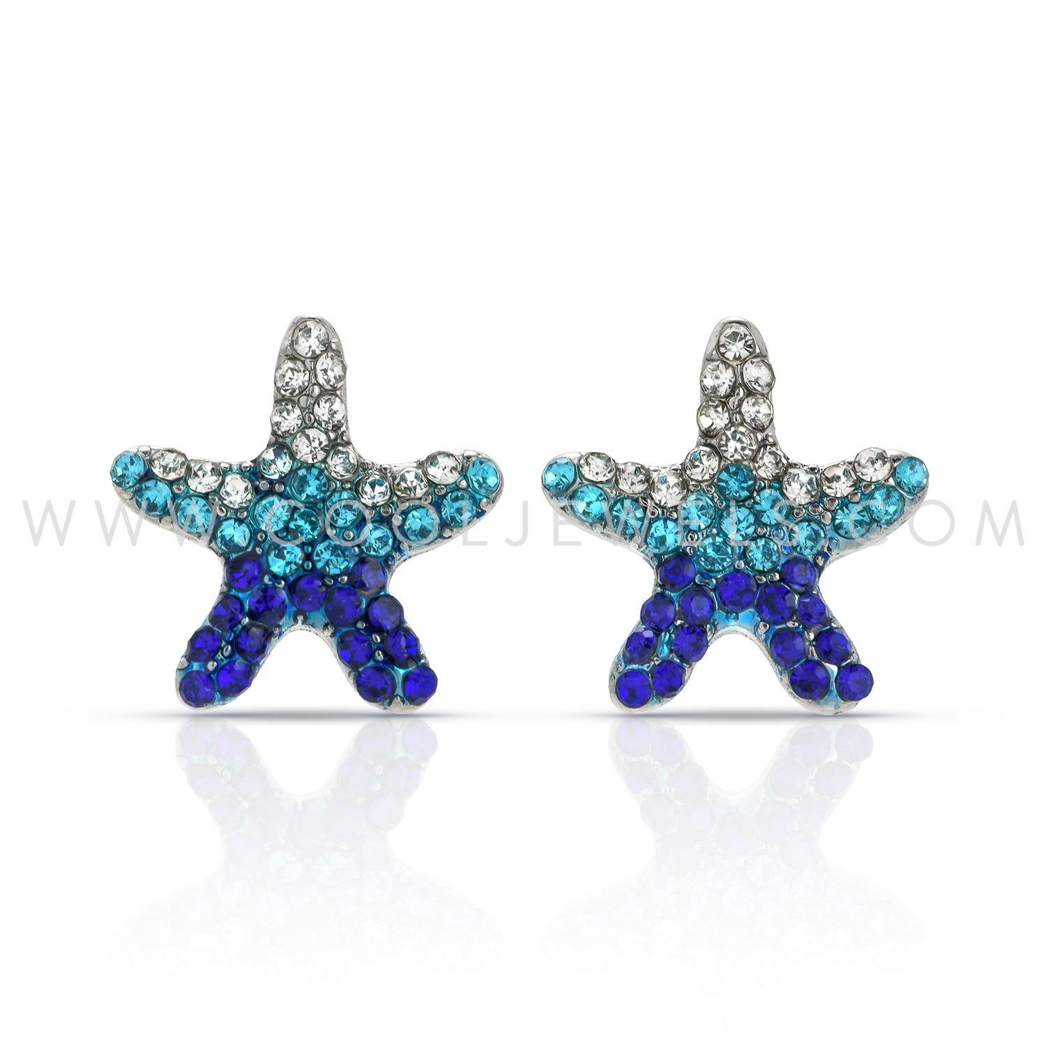 These Rhinestone Starfish Earrings are hot! Each earring has dark blue, turquoise, and clear rhinestones.