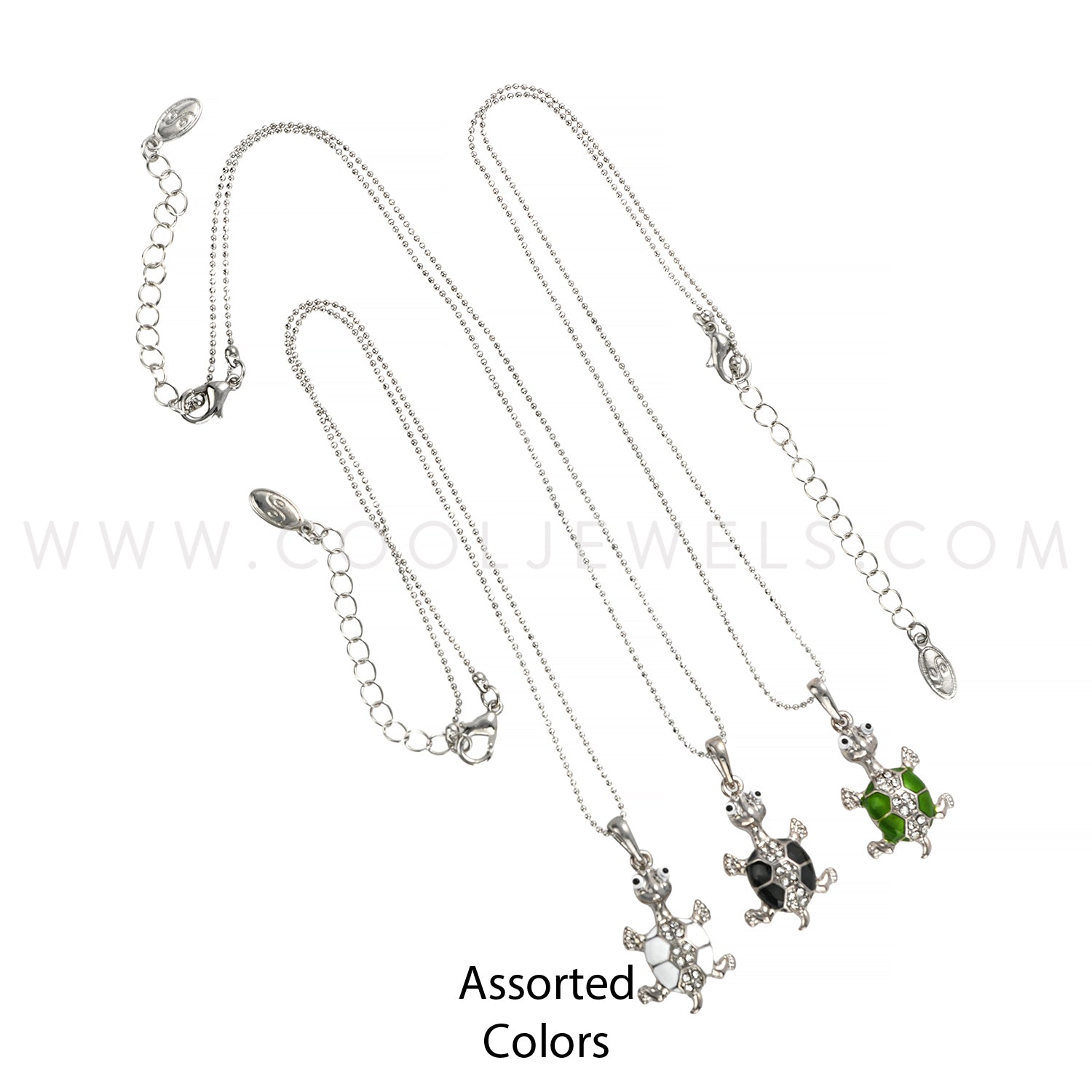 SILVER BALL CHAIN NECKLACE WITH RHINESTONE TURTLE & GOOFY EYES - ASSORTED