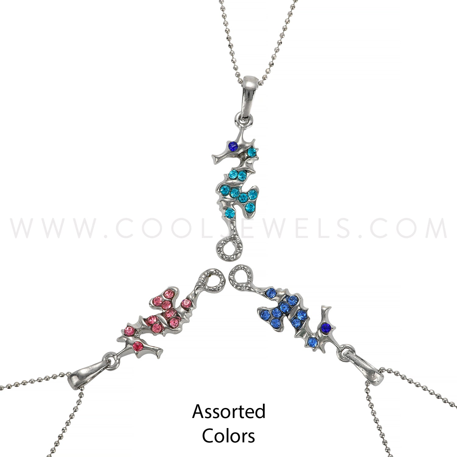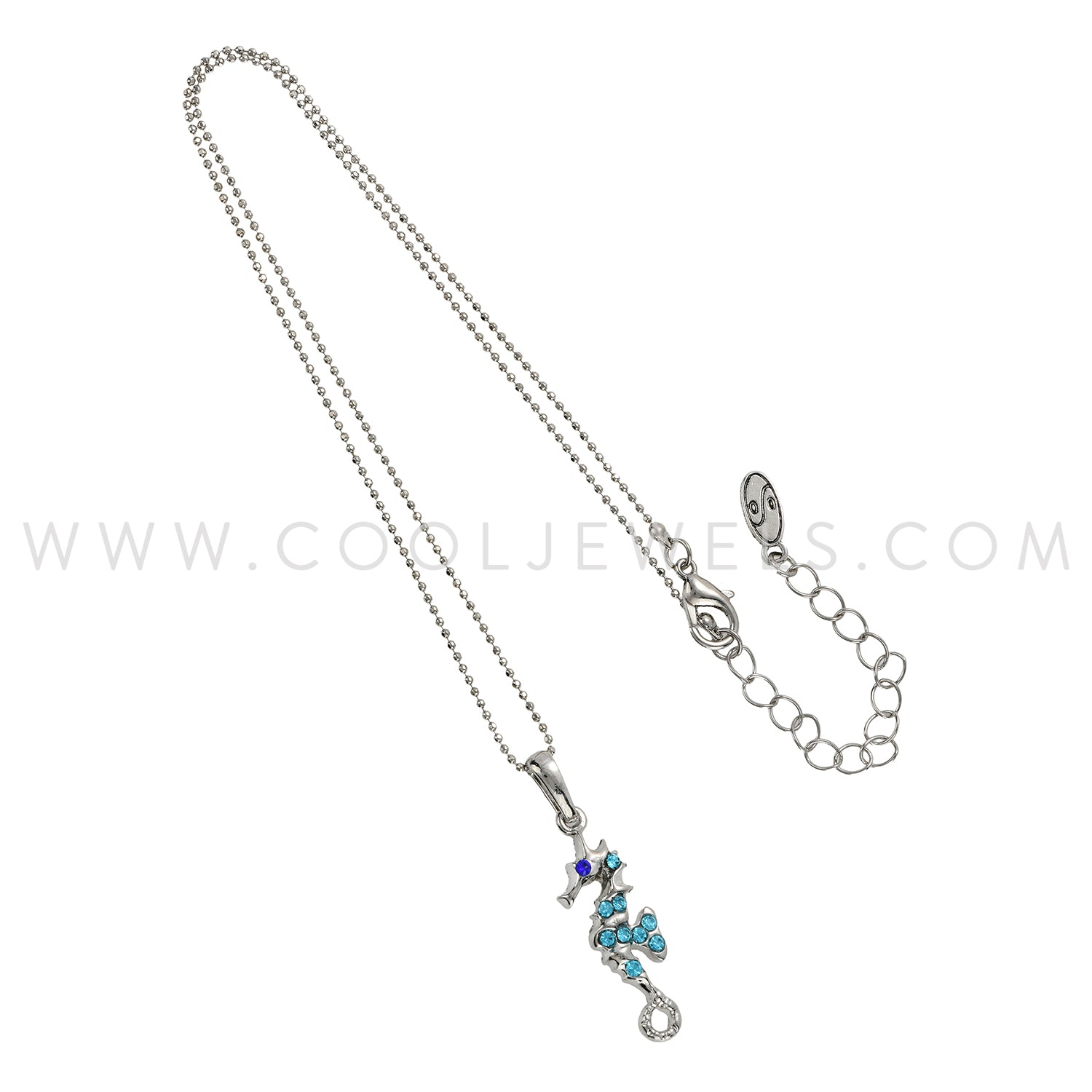 SILVER BALL CHAIN NECKLACE WITH RHINESTONE SEAHORSE