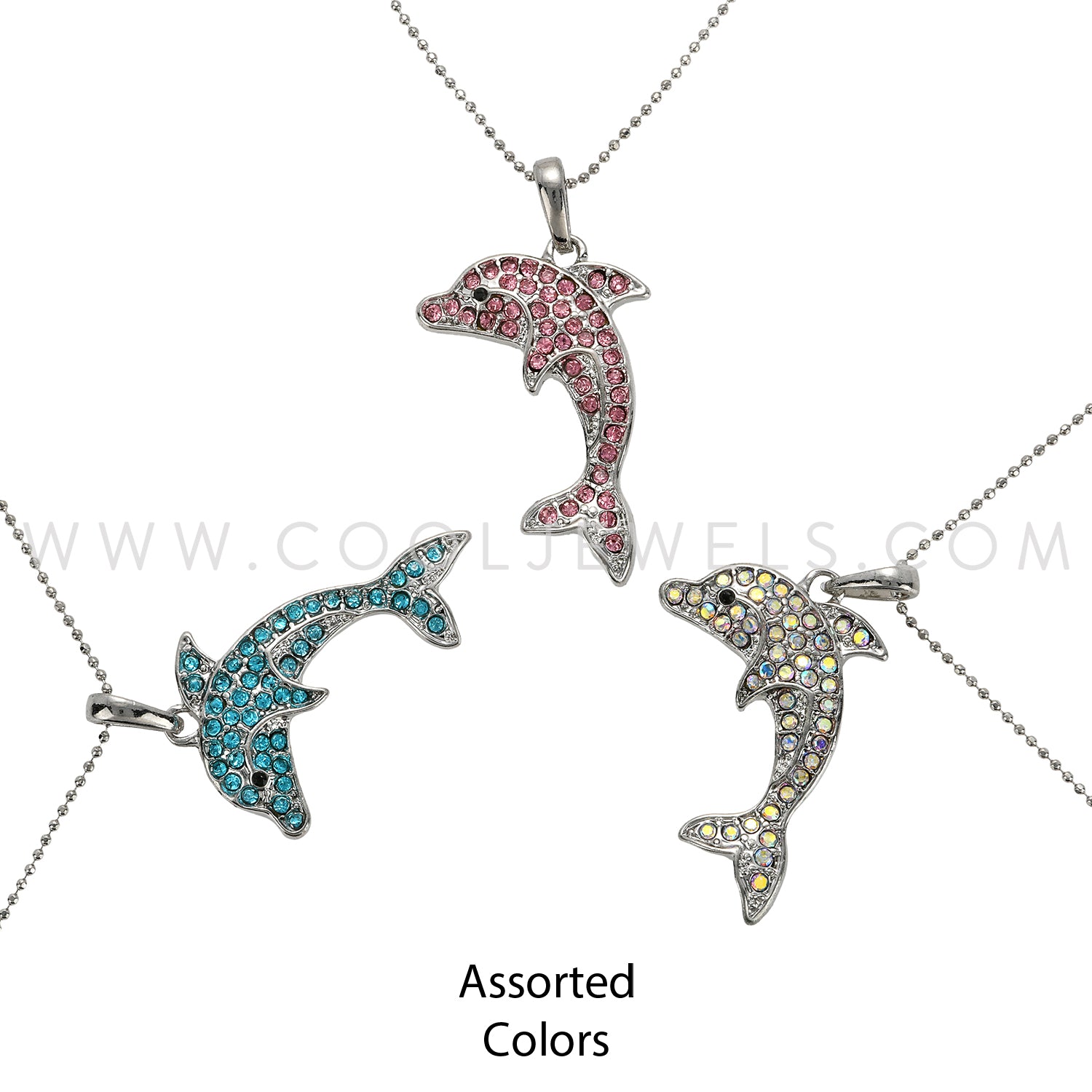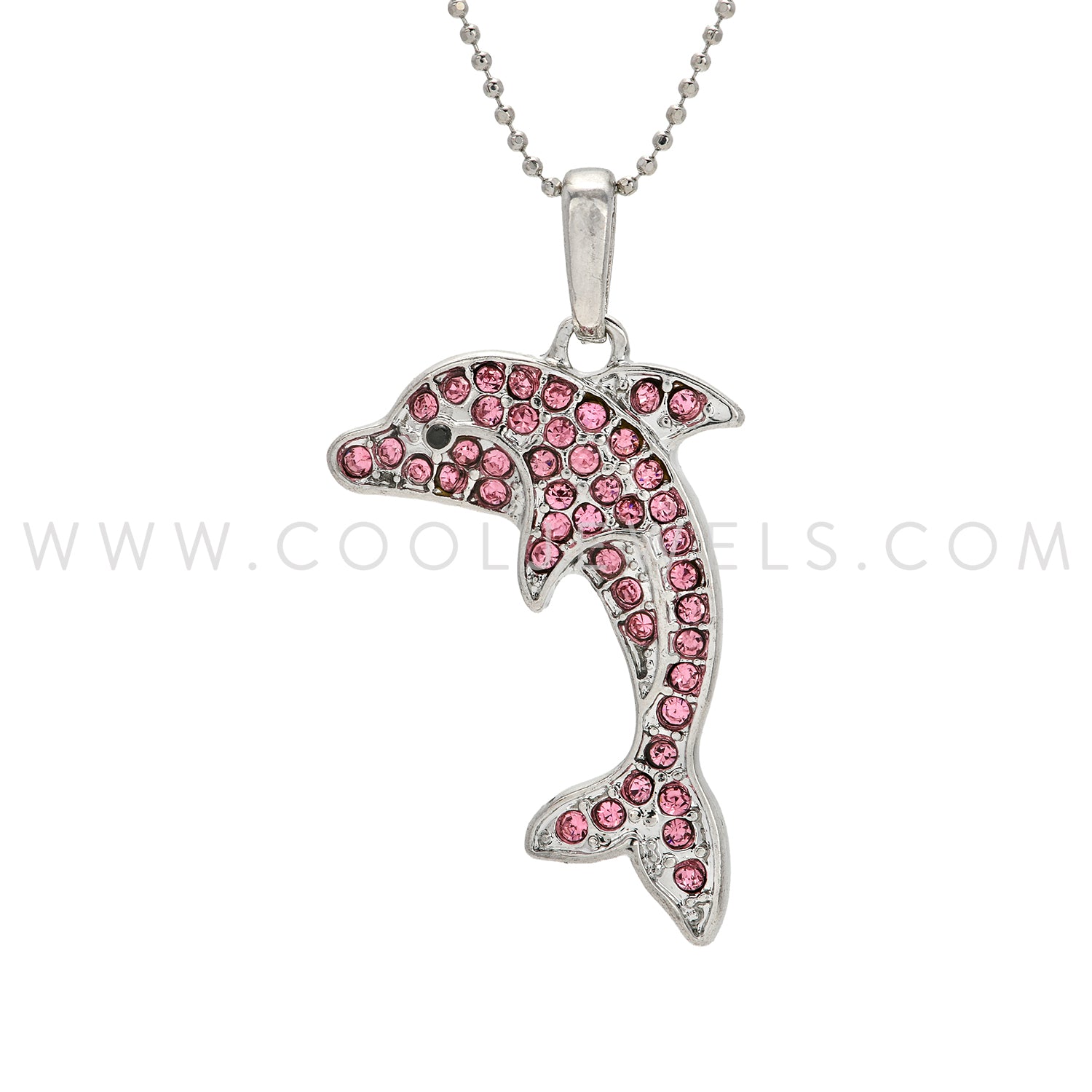 SILVER BALL CHAIN NECKLACE WITH RHINESTONE DOLPHIN