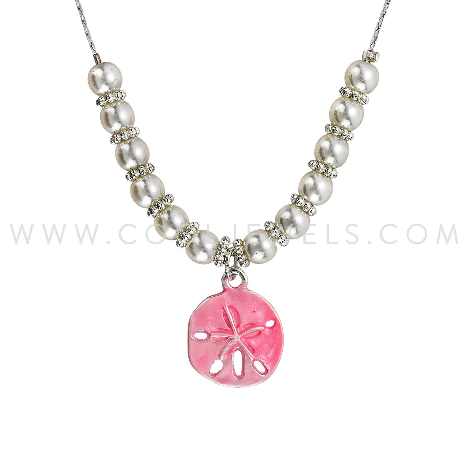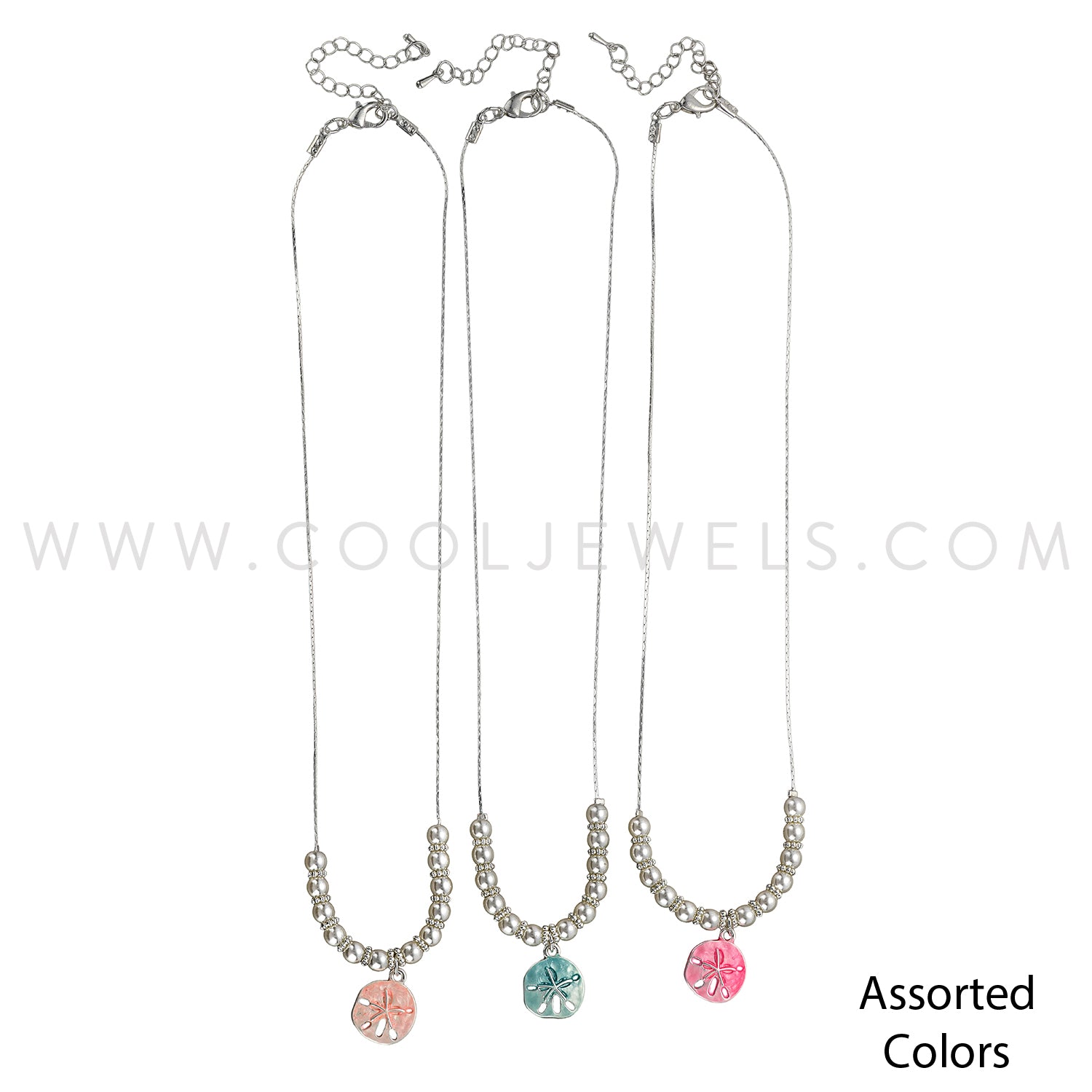 SILVER NECKLACE WITH WHITE BEADS & PEARLIZED SAND DOLLAR