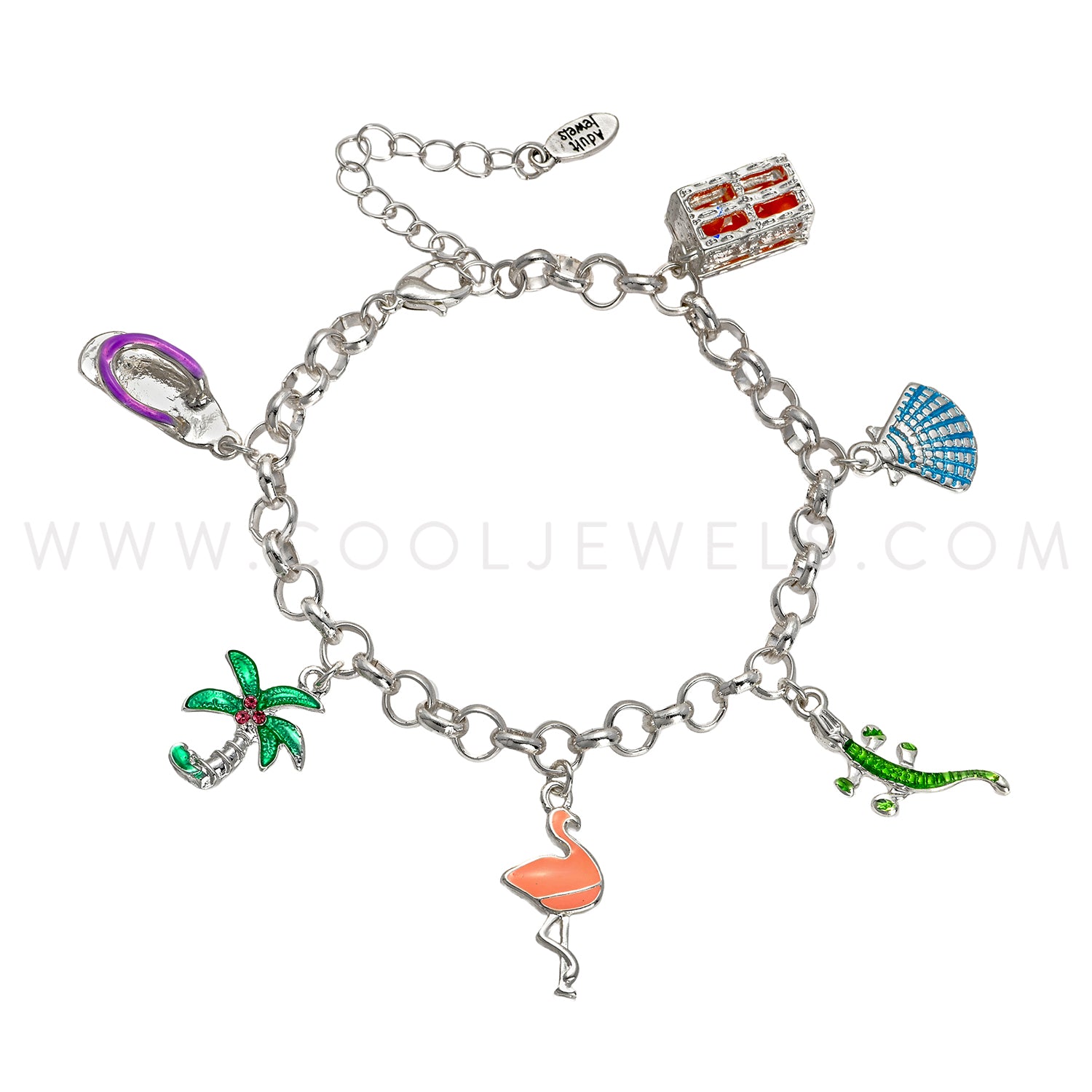 CHAIN LINK BRACELET WITH ASSORTED ENAMEL CHARMS