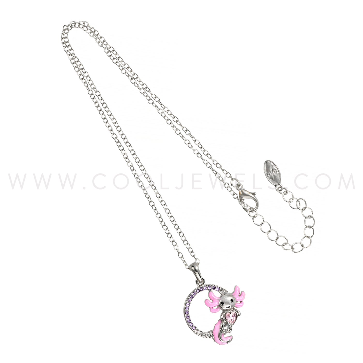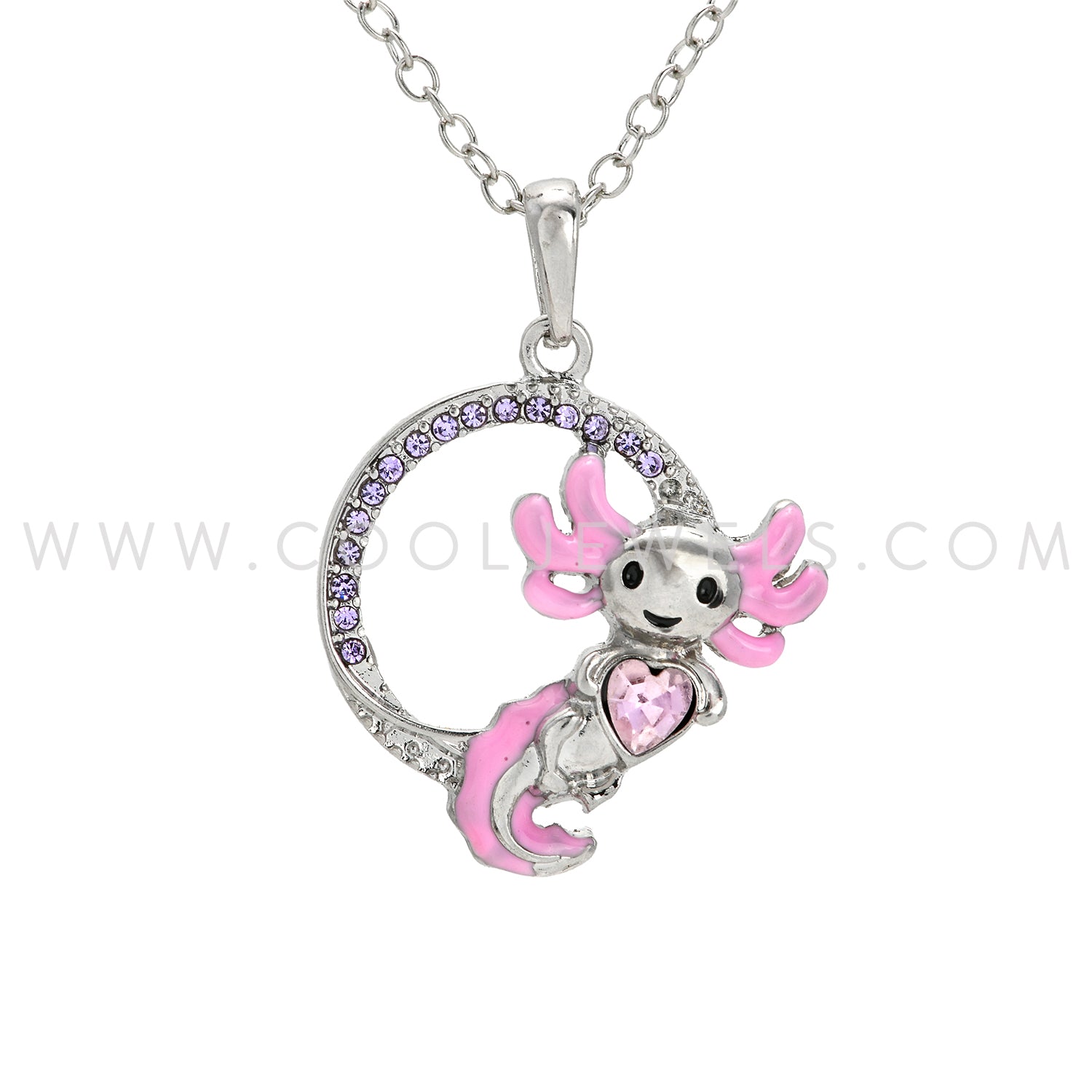 LINK CHAIN NECKLACE WITH ROUND RHINESTONE AXOLOTL PENDANT