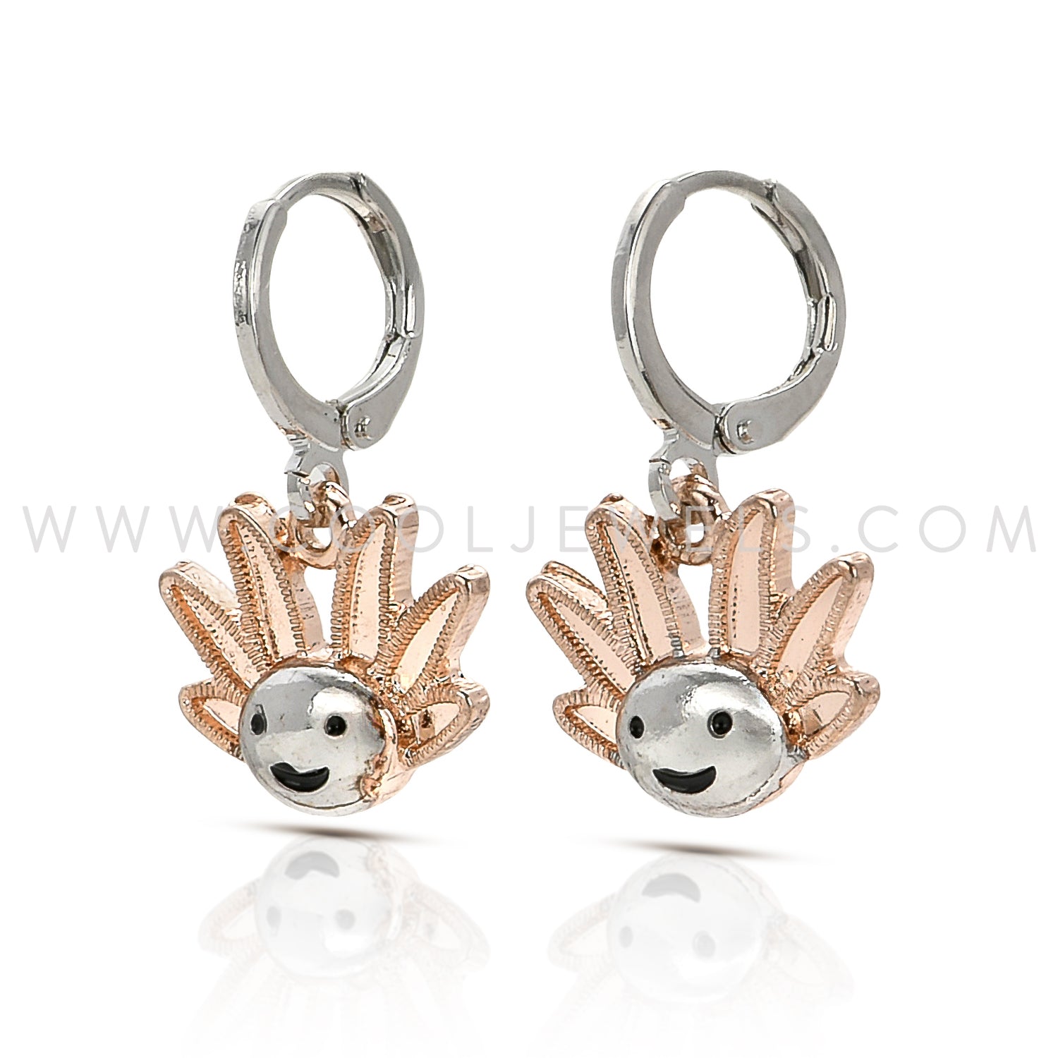 HUGGIE HOOP EARRINGS WITH AXOLOTL HEAD PENDANTS