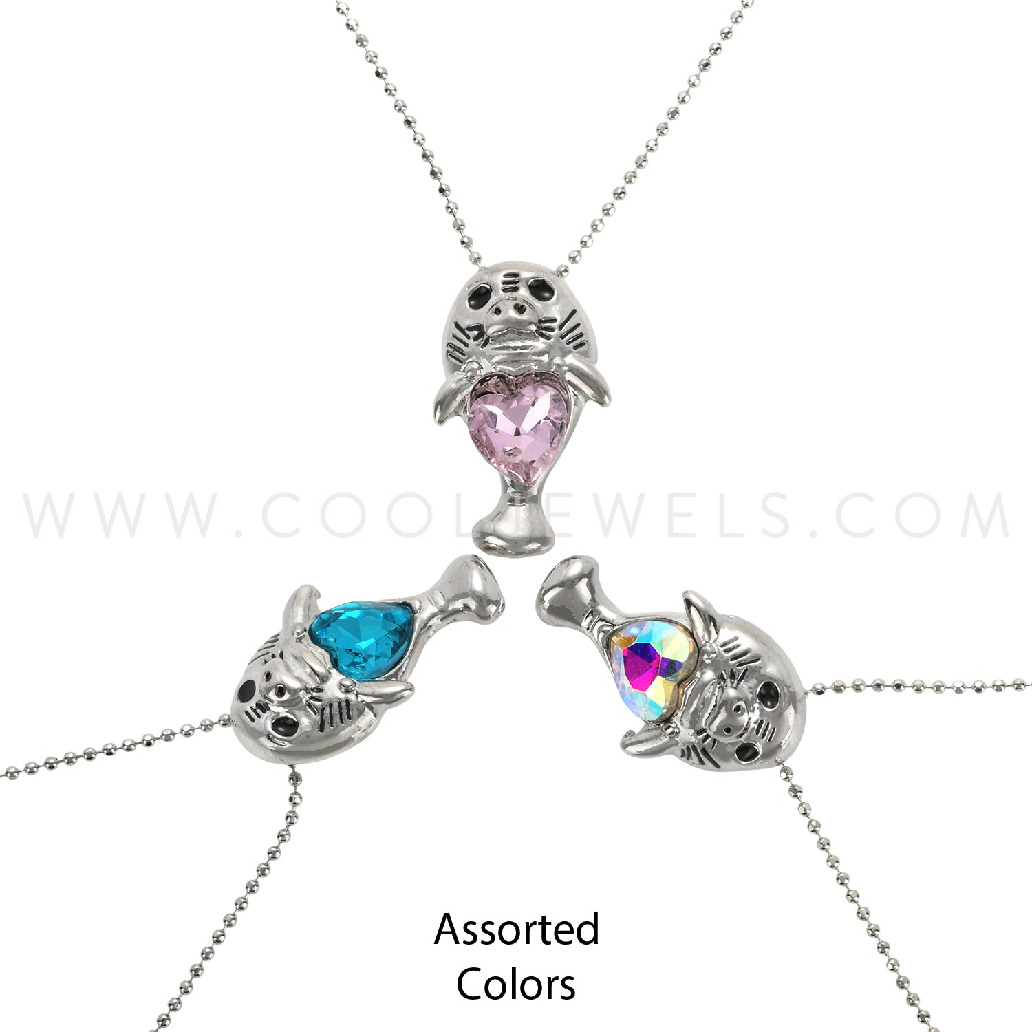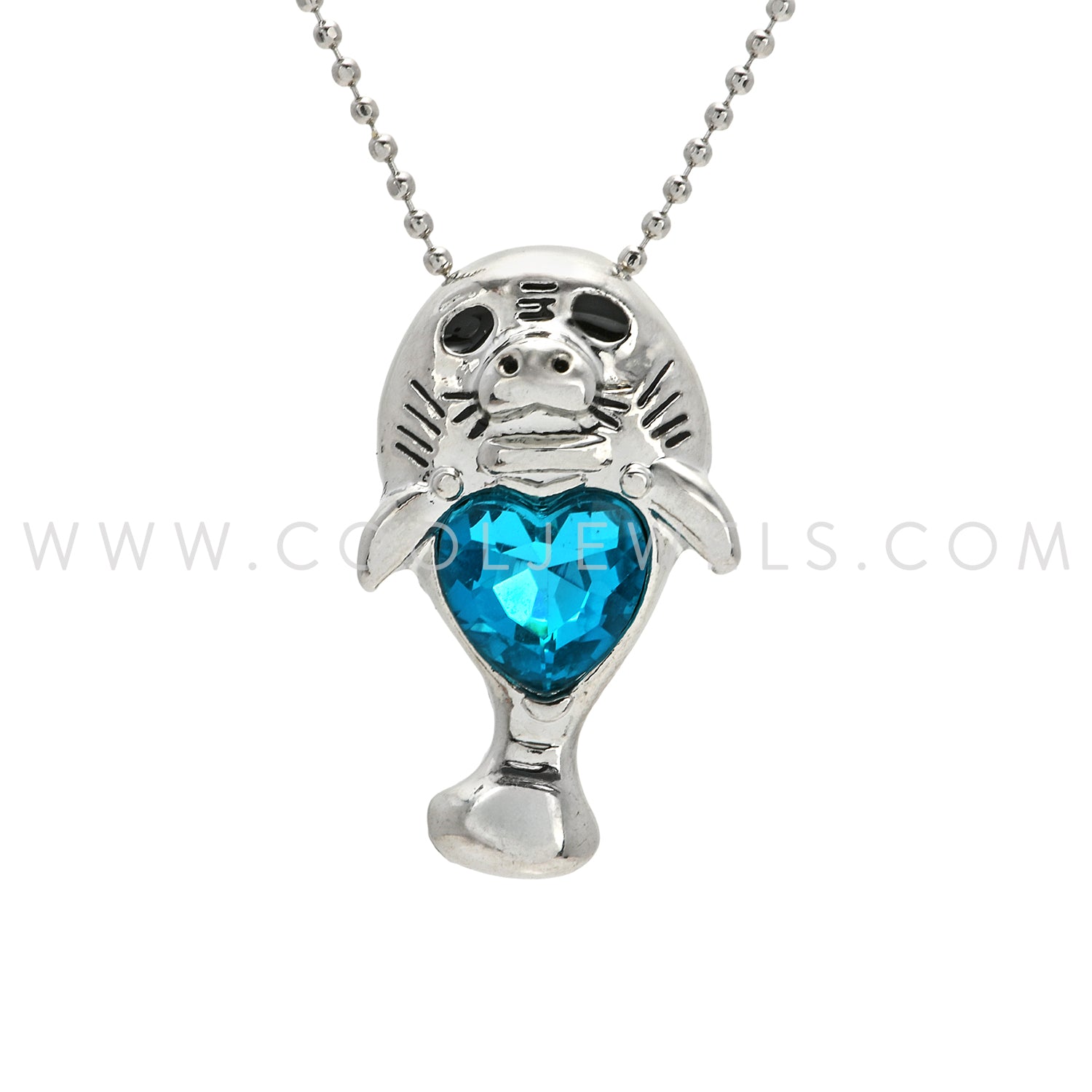 DC BALL CHAIN WITH MANATEE & CRYSTAL HEART PENDANT - ASSORTED