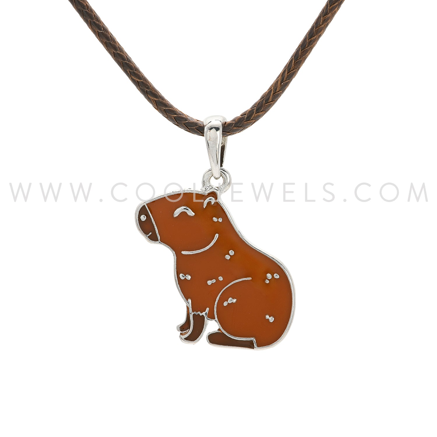 CORD NECKLACE WITH ENAMEL CAPYBARA PENDANT - ASSORTED