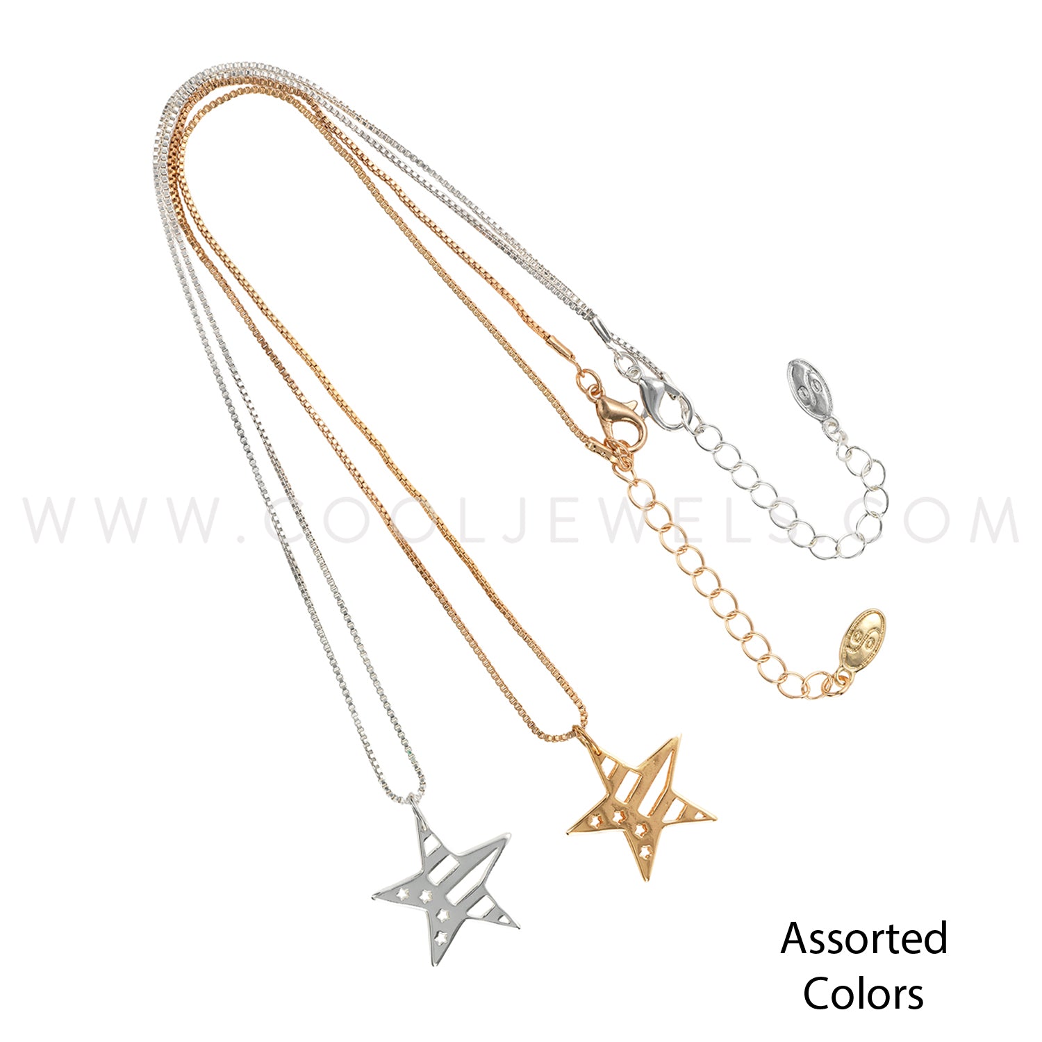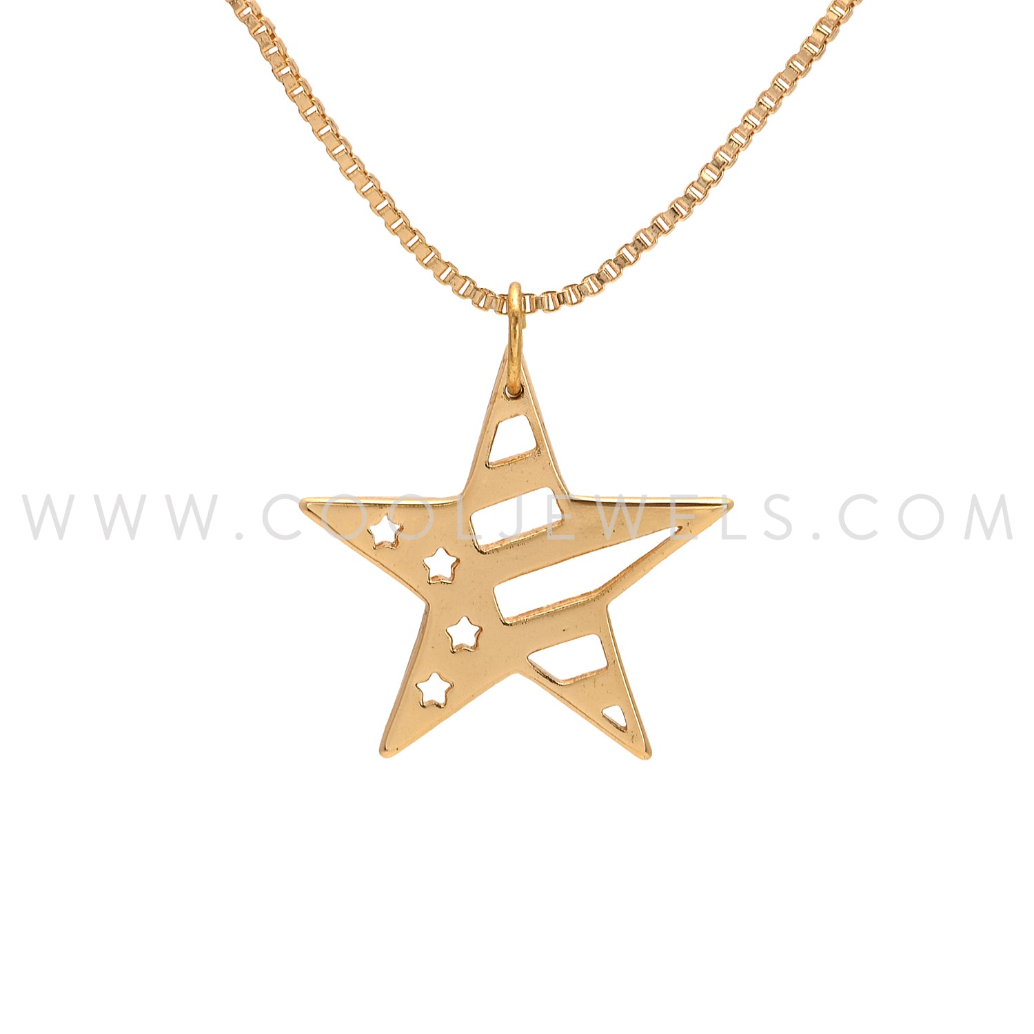 BOX CHAIN NECKLACE WITH OUTLINE STRIPES AND STAR PENDANT