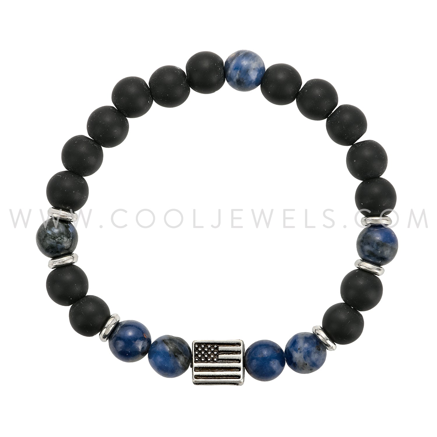 Double Elastic Stretch Beaded Bracelet with American Flag