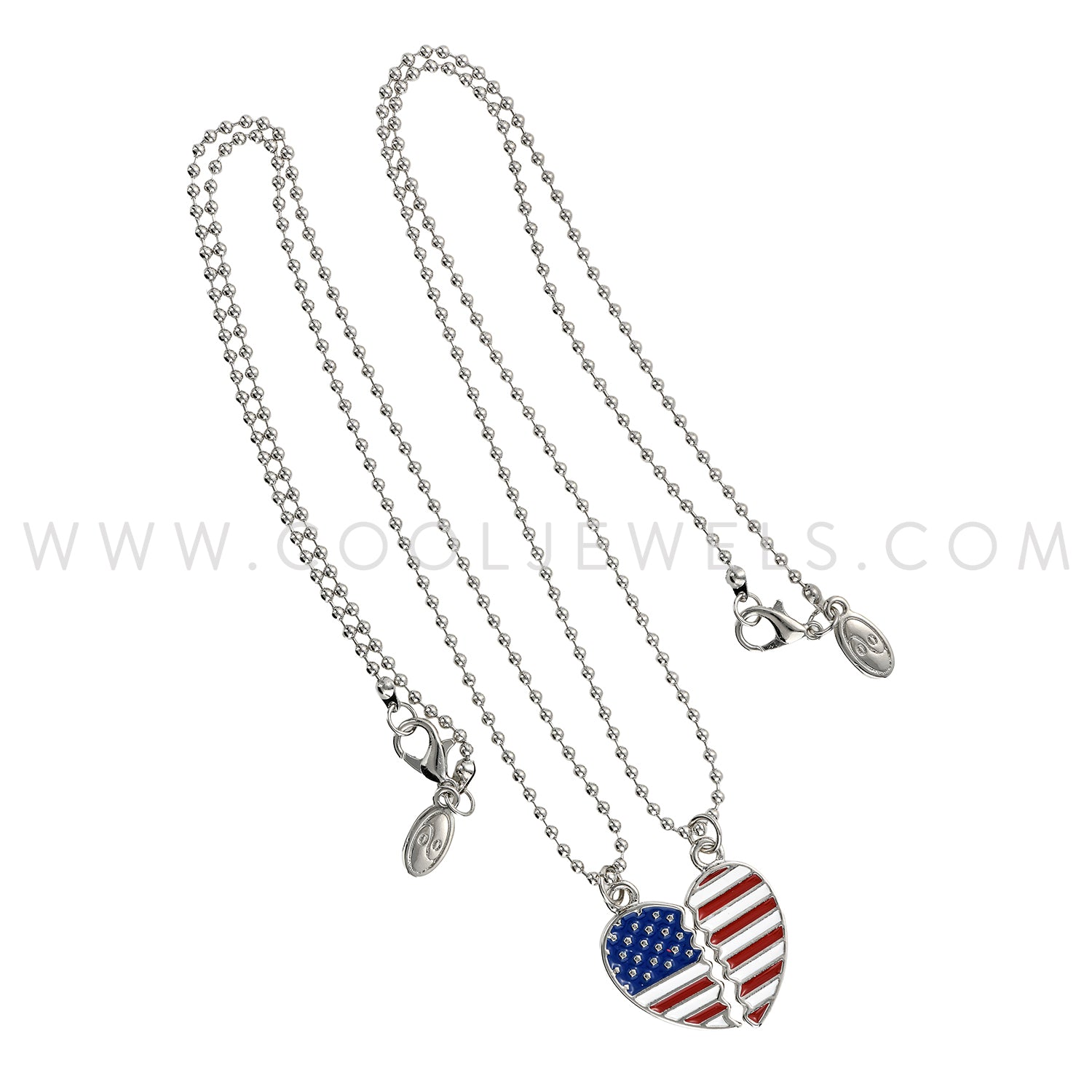American Flag Hearts Best Friends Necklaces (2 Piece Set)