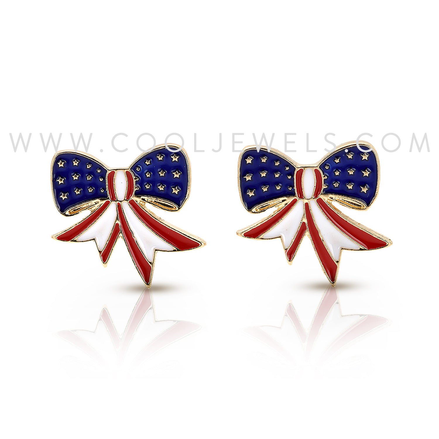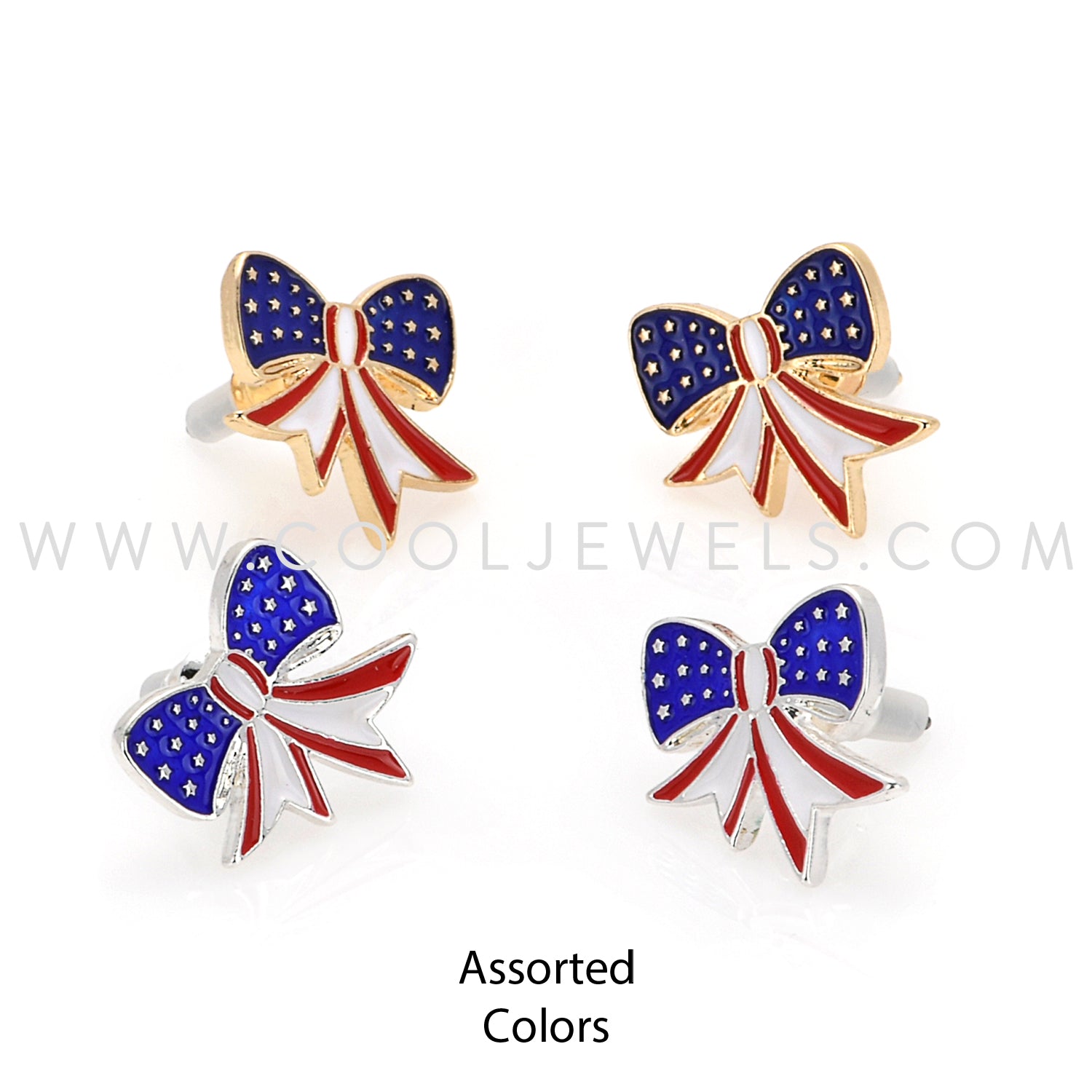 POST EARRINGS WITH AMERICANA BOWS - ASSORTED