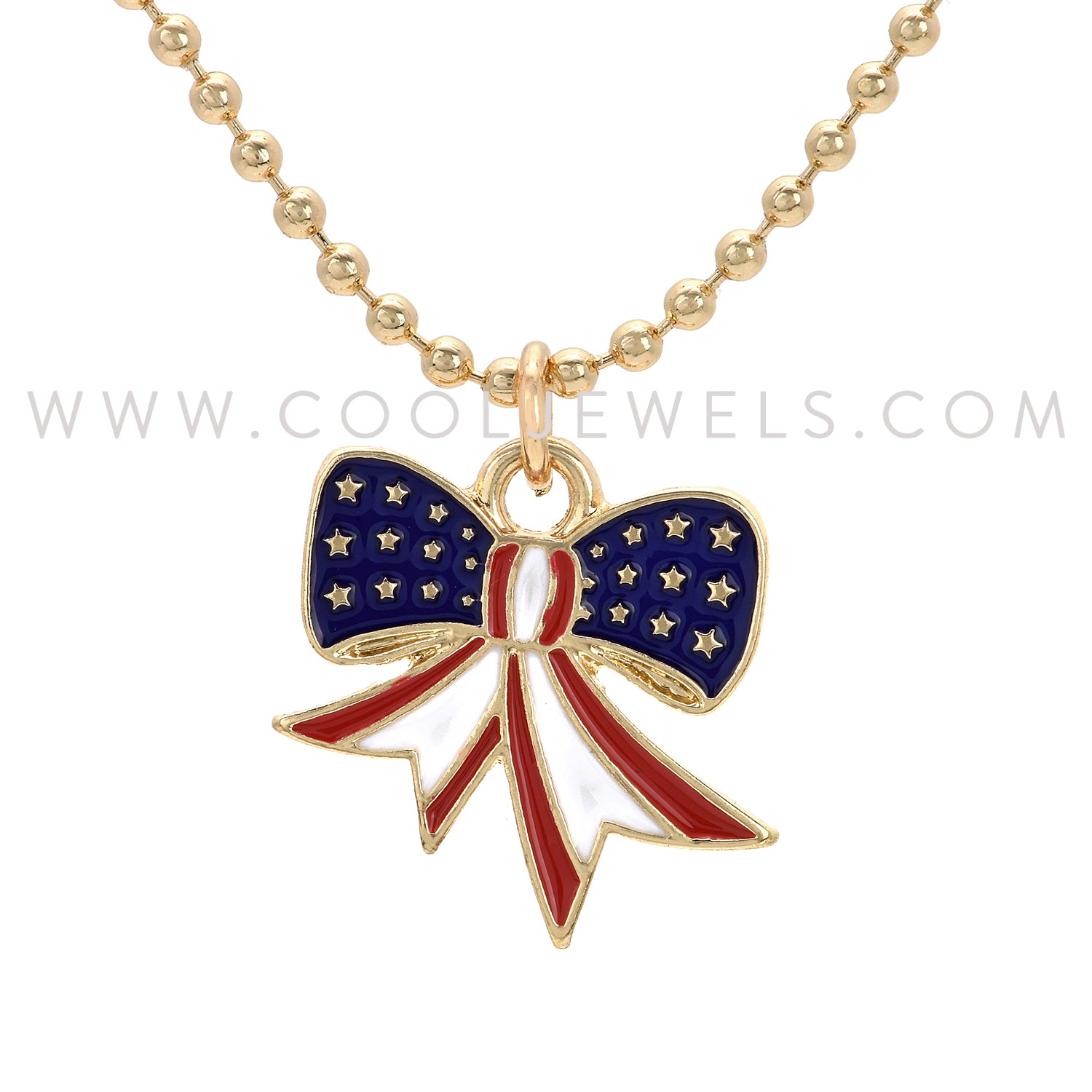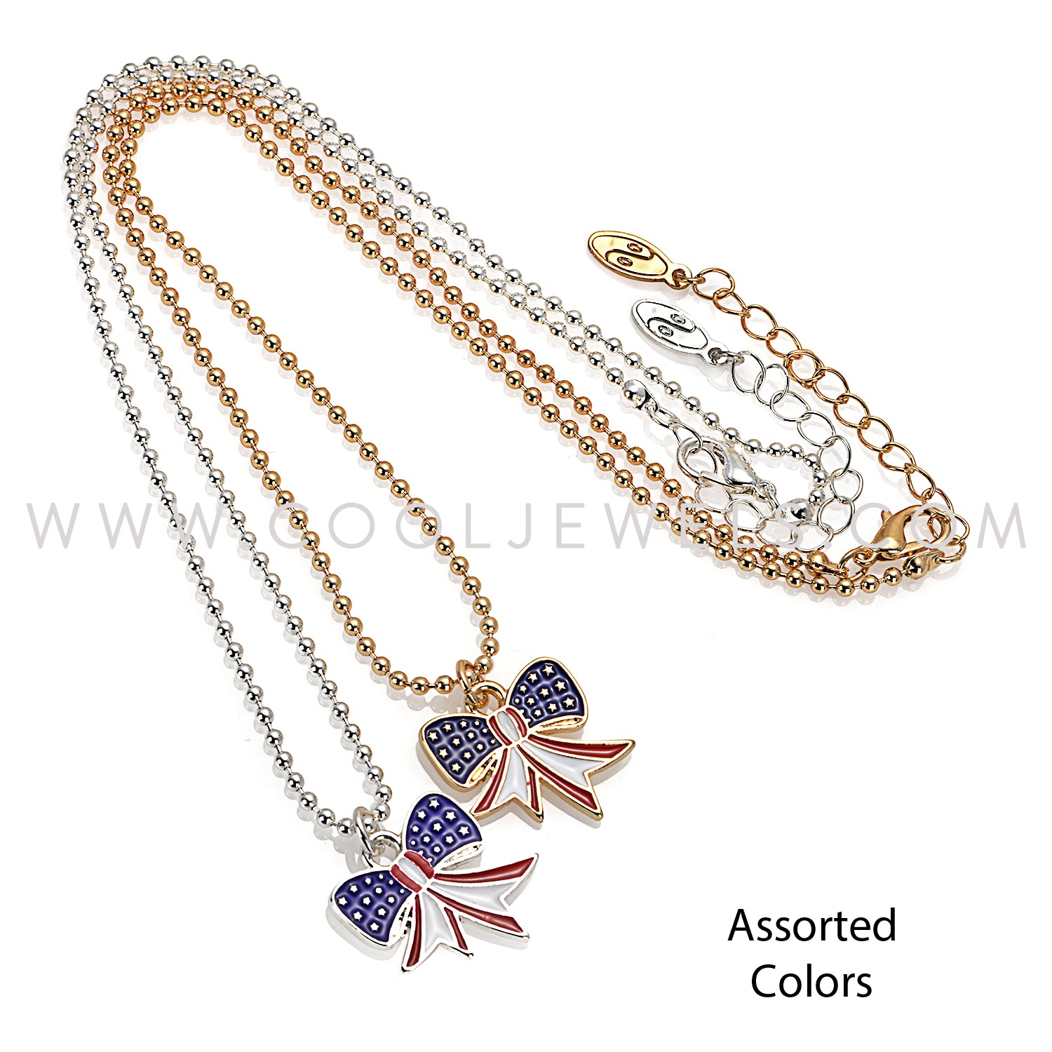 BALL CHAIN NECKLACE WITH AMERICANA BOW PENDANTS - ASSORTED