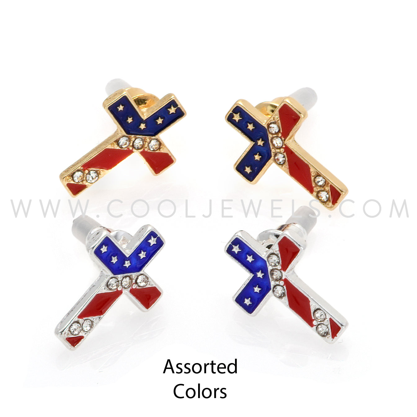 POST EARRINGS WITH AMERICANA CROSSES - ASSORTED