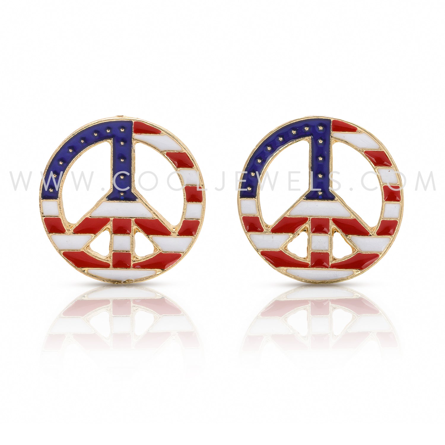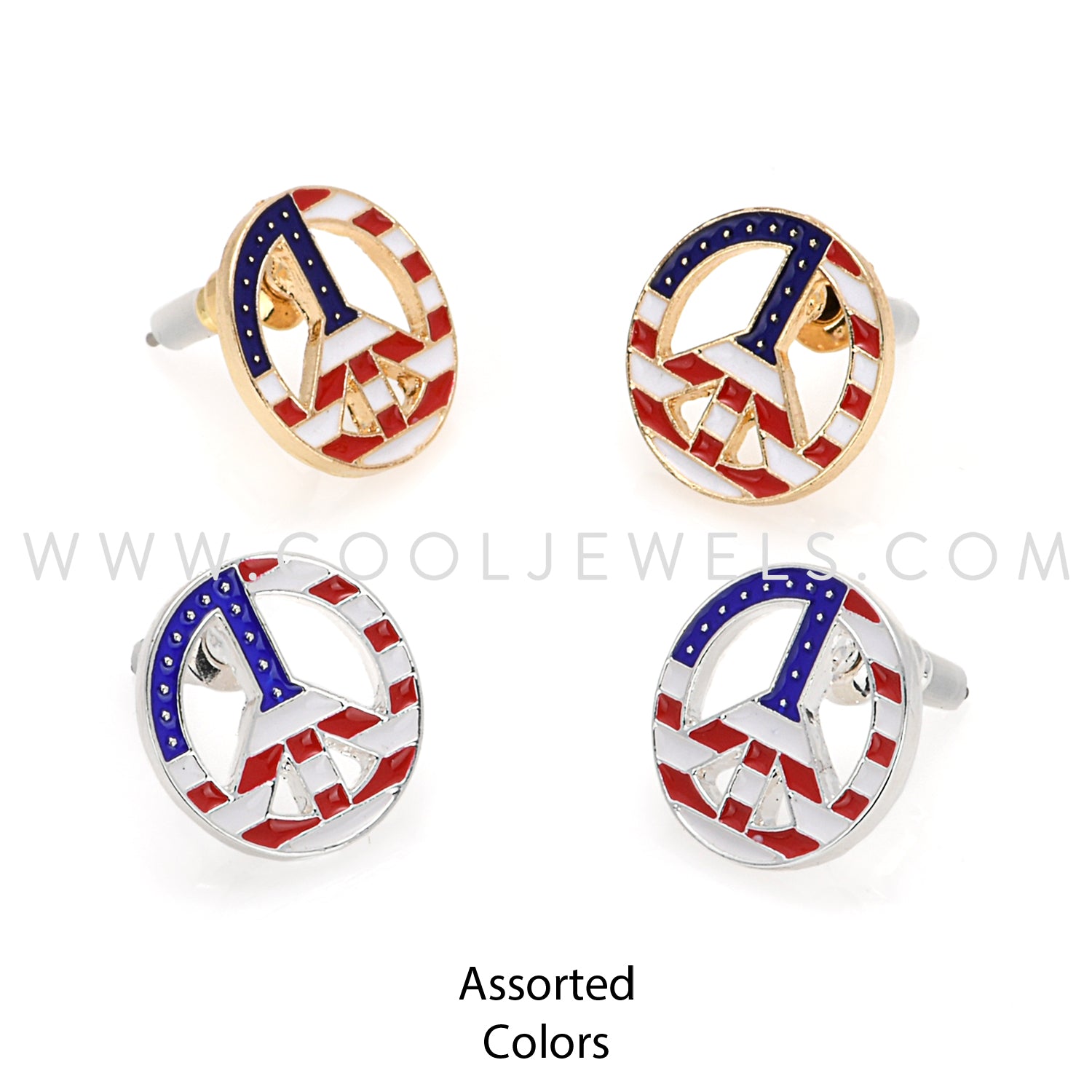 POST EARRINGS WITH AMERICANA PEACE SIGNS - ASSORTED