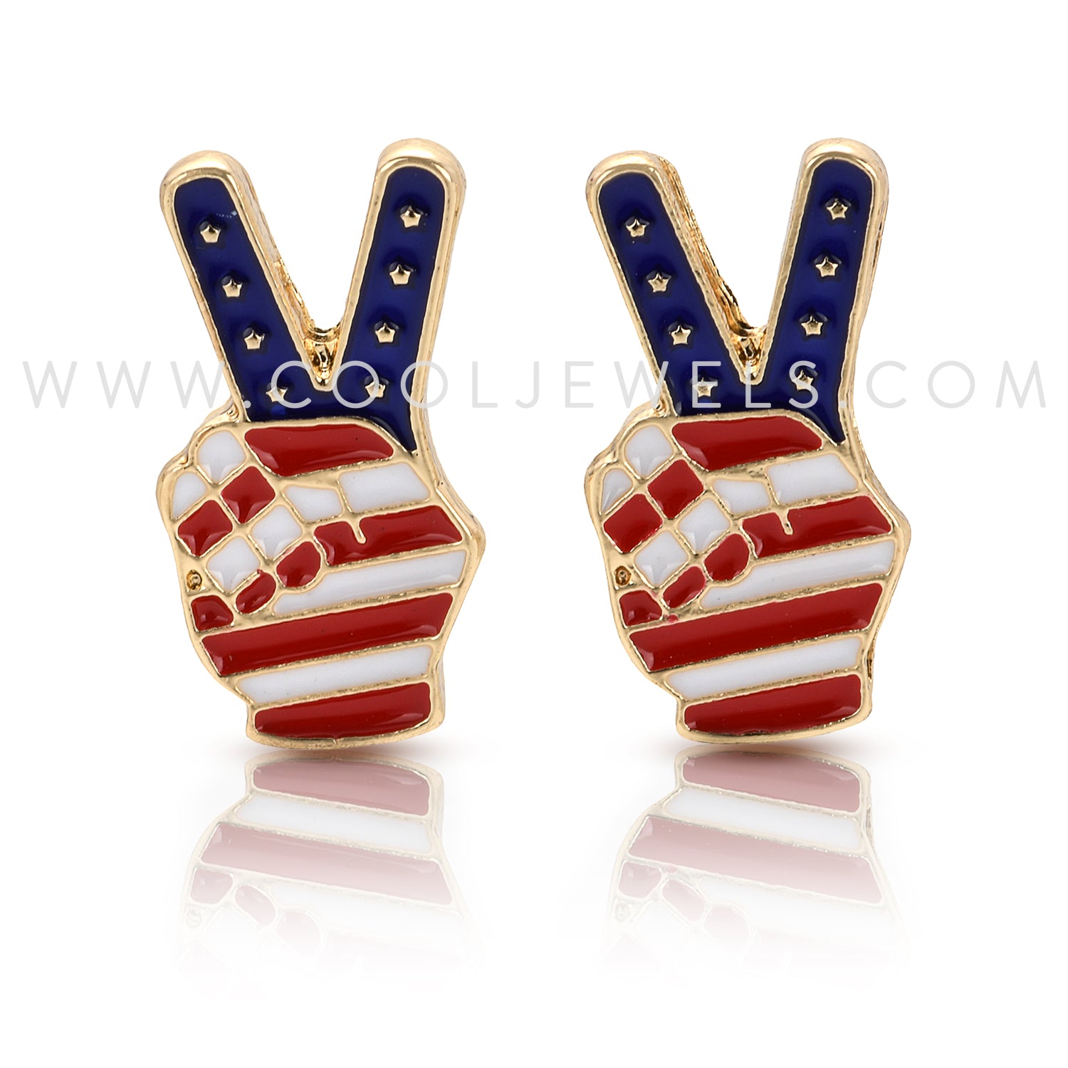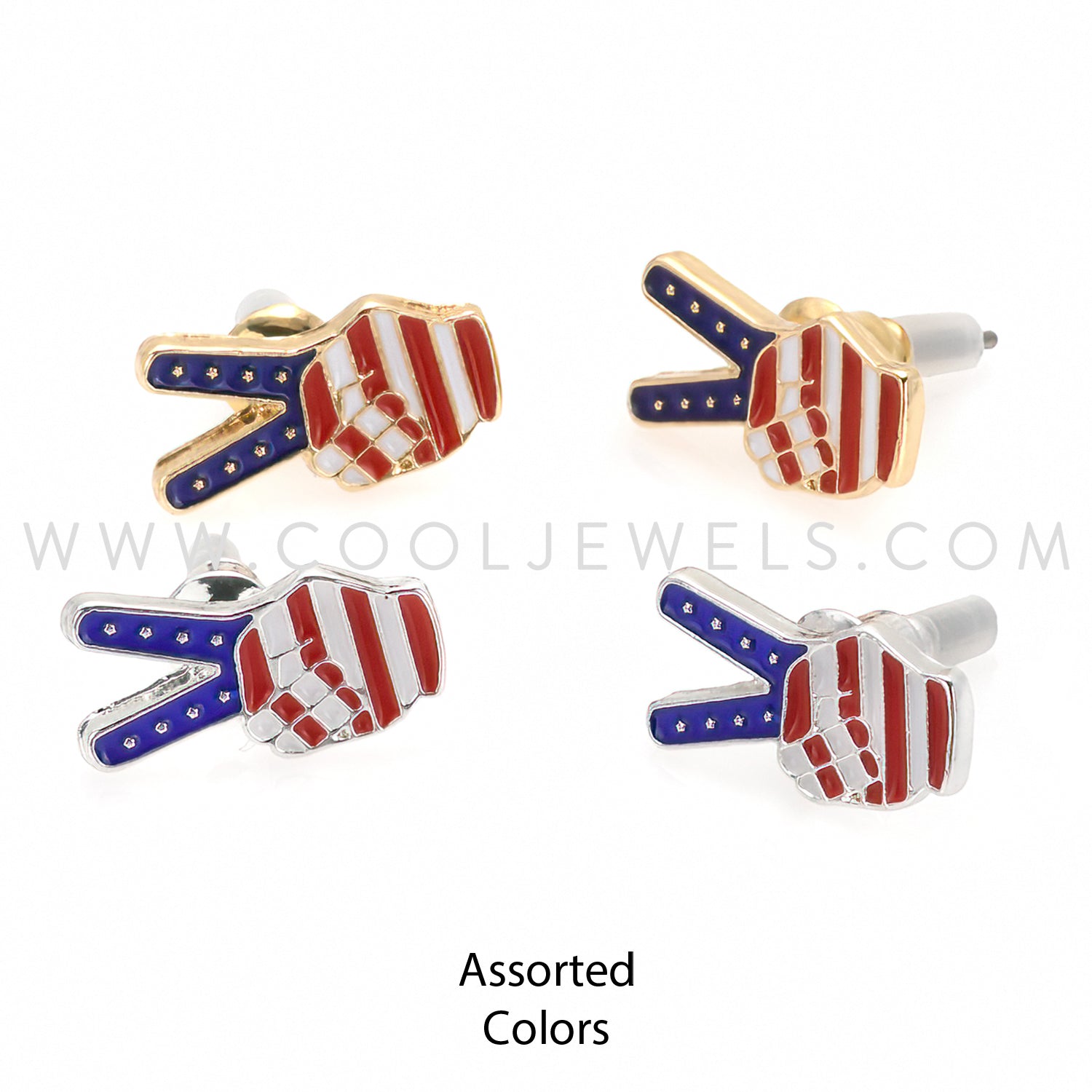 POST EARRINGS WITH AMERICANA PEACE SIGN FINGERS - ASSORTED