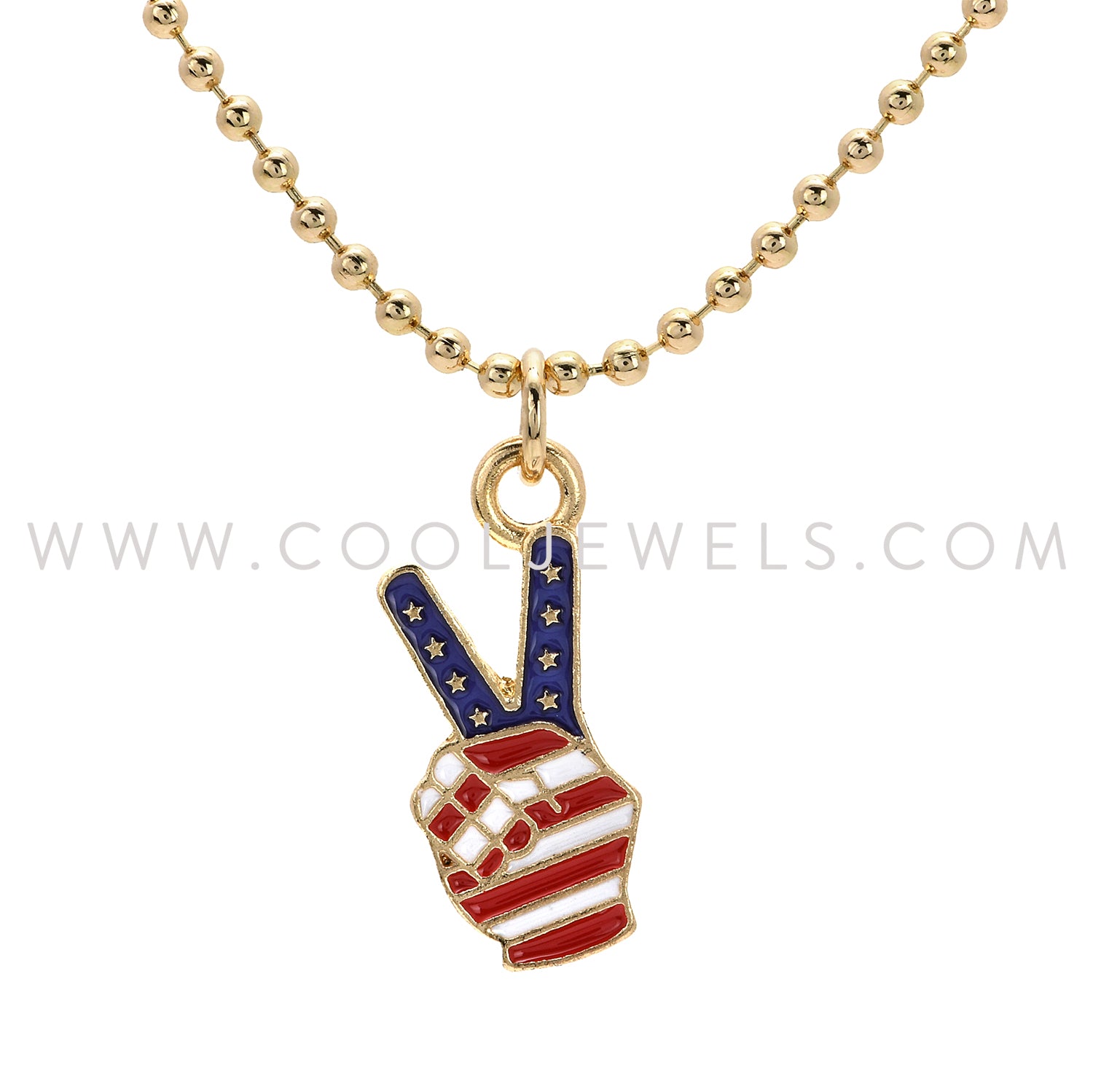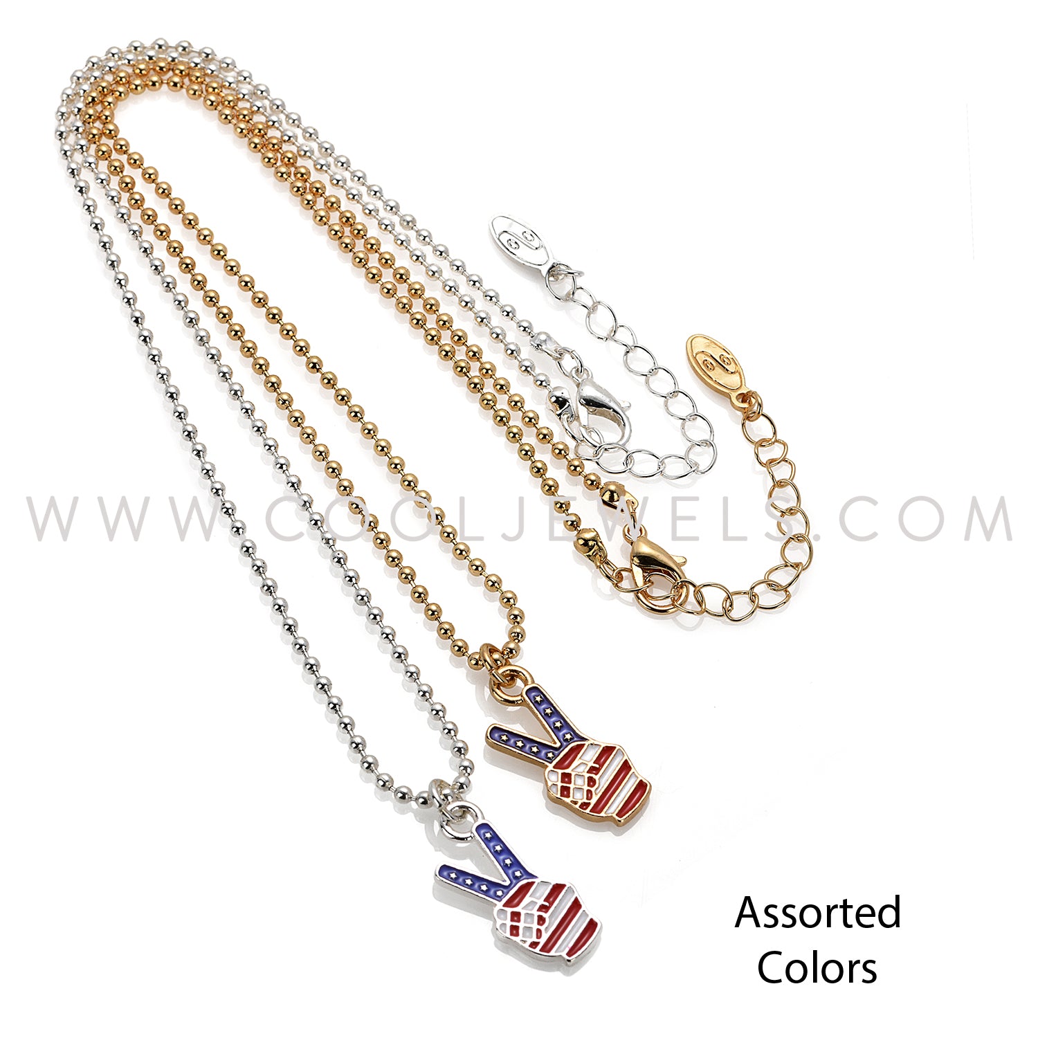 BALL CHAIN NECKLACE WITH PEACE SIGN FINGERS PENDANT - ASSORTED