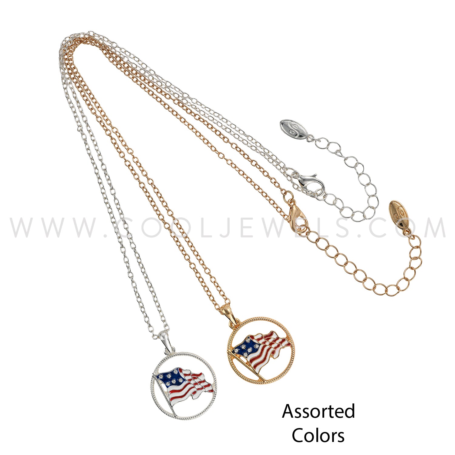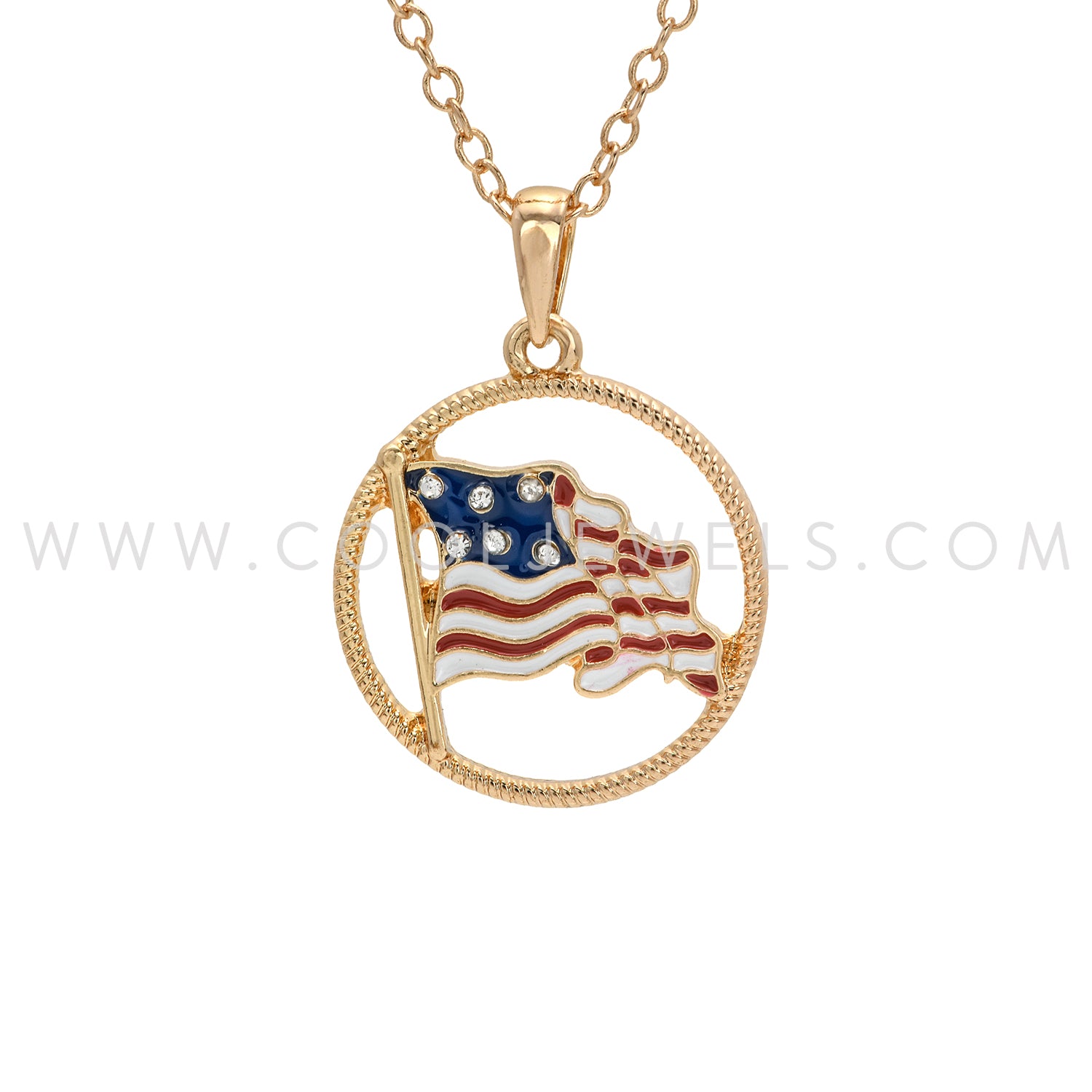 CHAIN NECKLACE WITH ROUND AMERICANA ENAMEL FLAG PENDANT