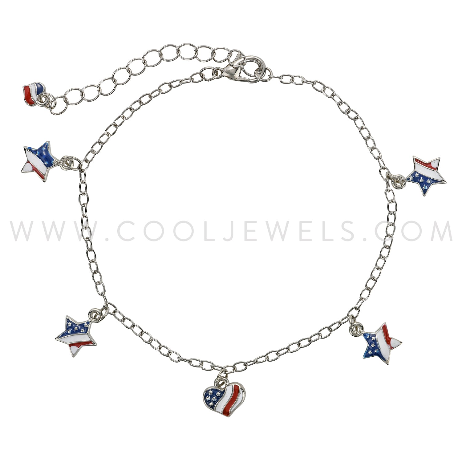 ANKLET WITH AMERICANA HEART & STAR CHARMS