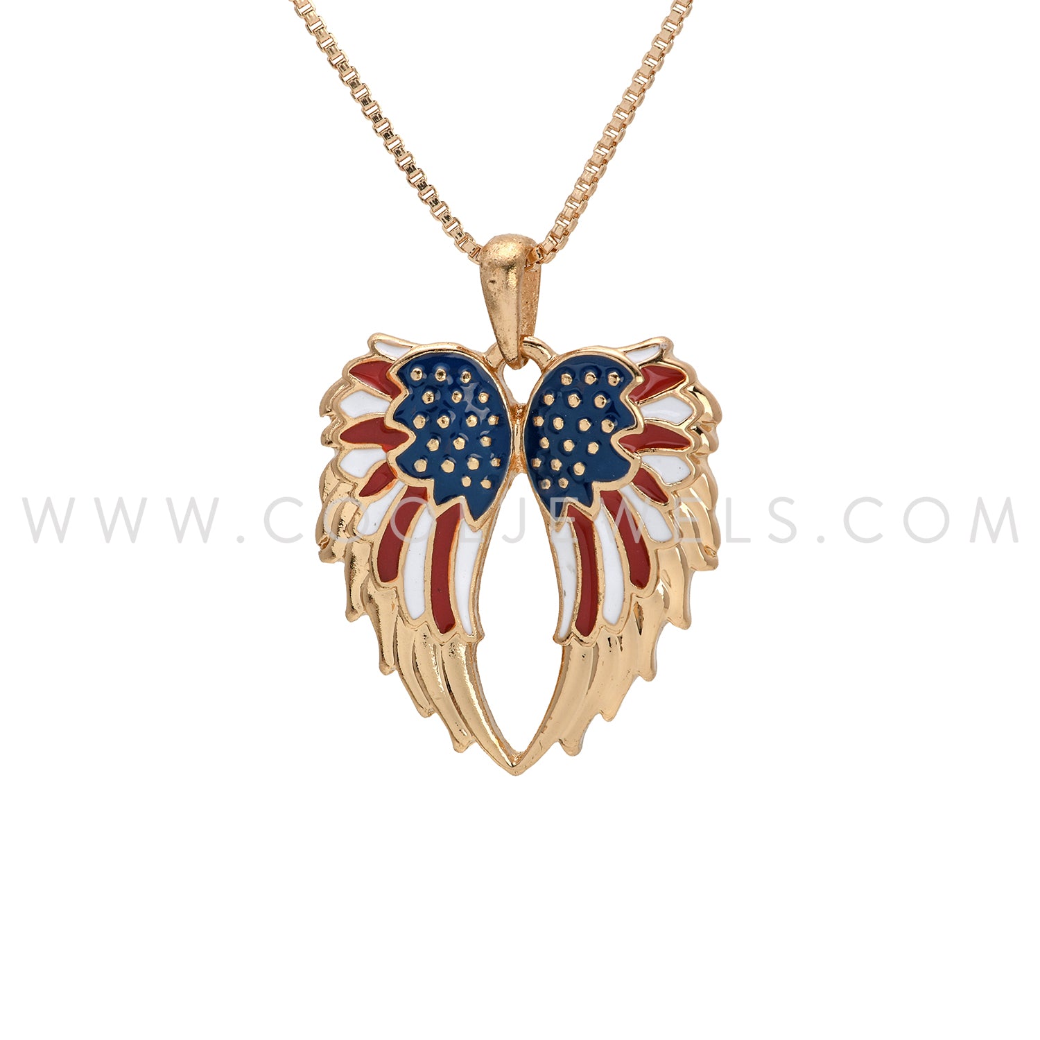 BOX CHAIN NECKLACE WITH AMERICANA ENAMEL WING PENDANT