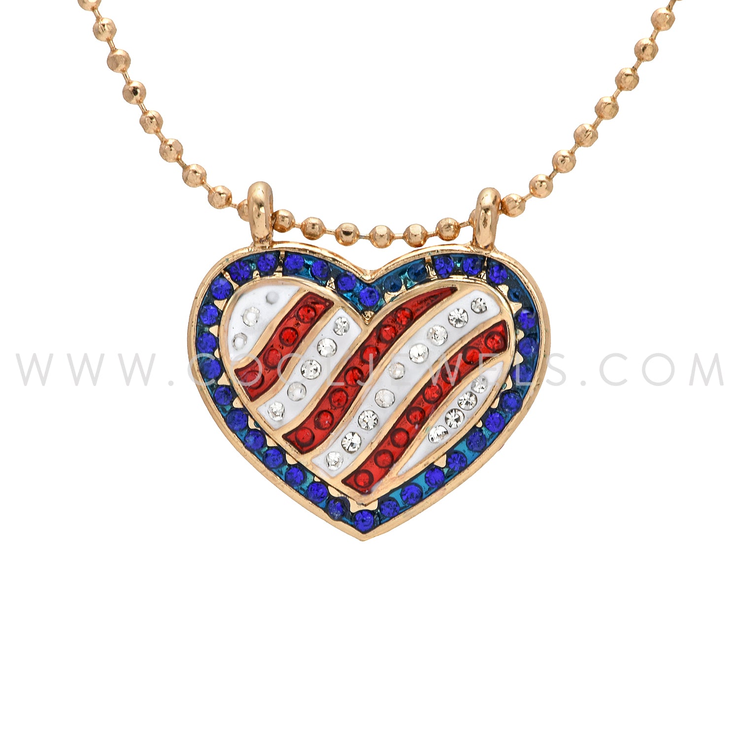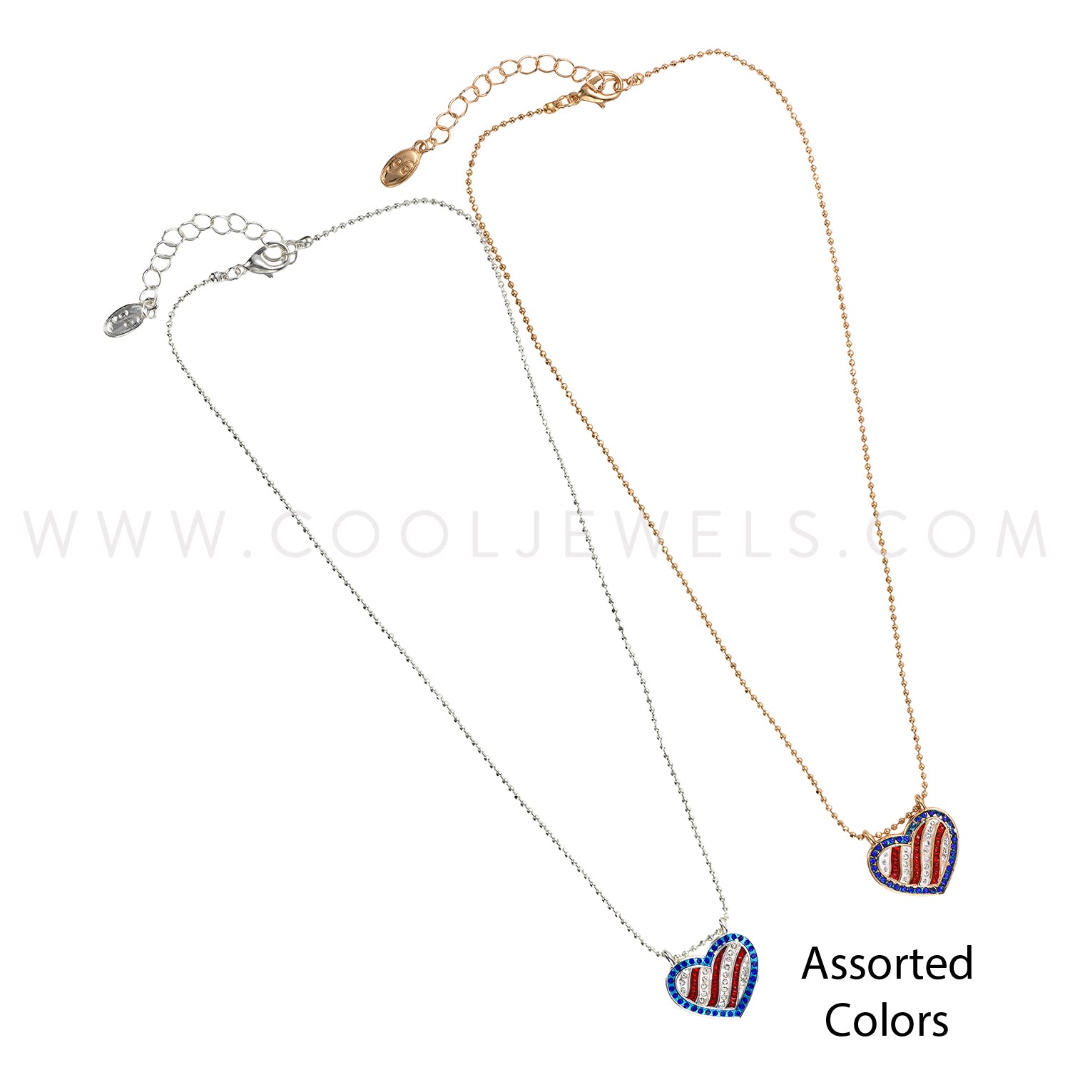 BALL CHAIN NK WITH RHINESTONE AMERICANA HEART PENDANTS