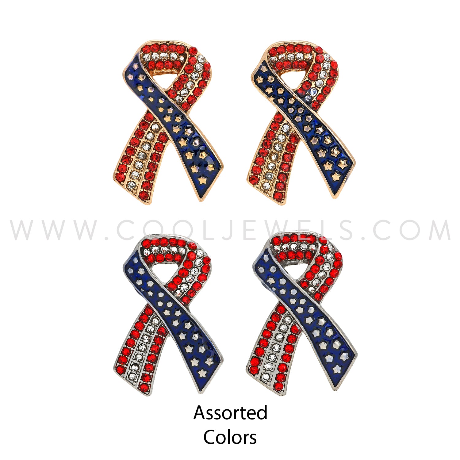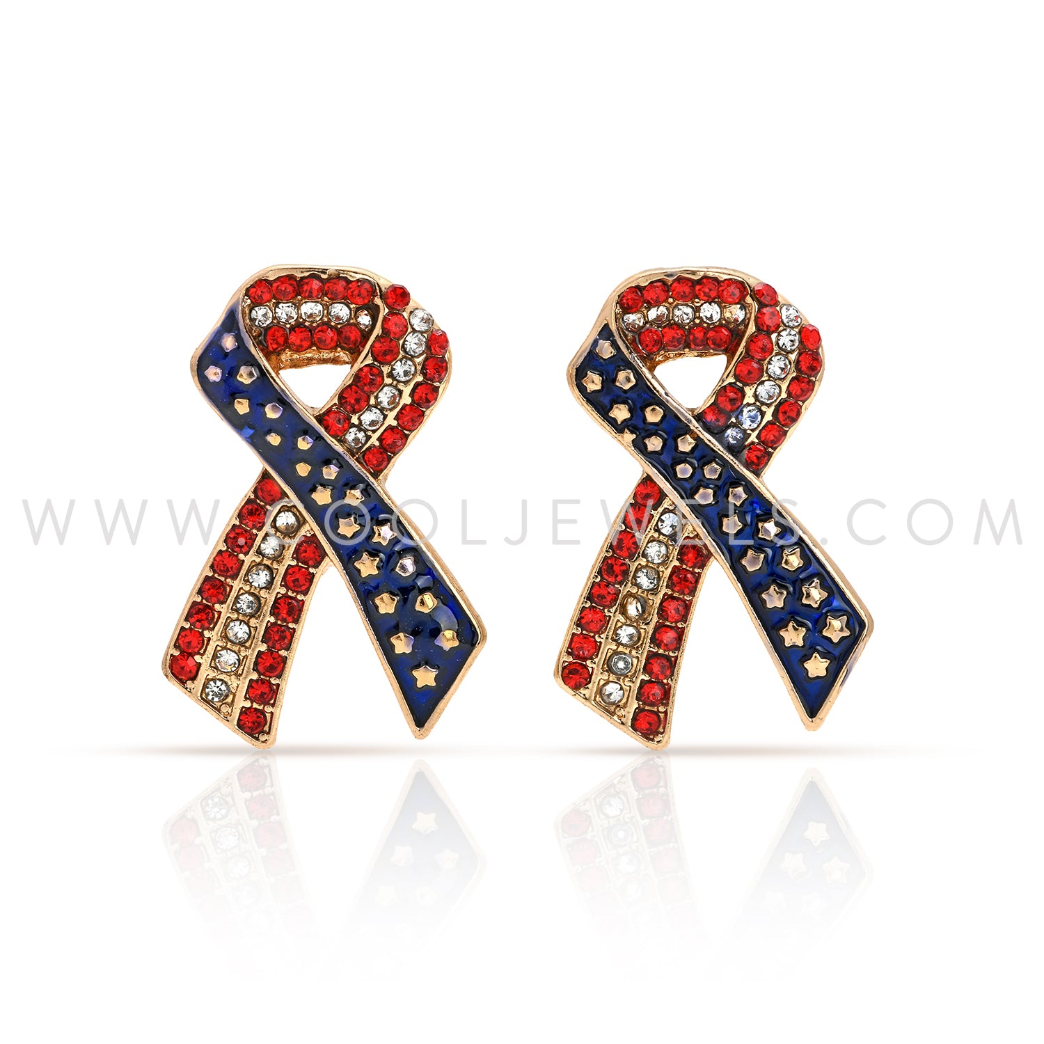 POST EARRINGS WITH RHINESTONE AMERICANA RIBBONS
