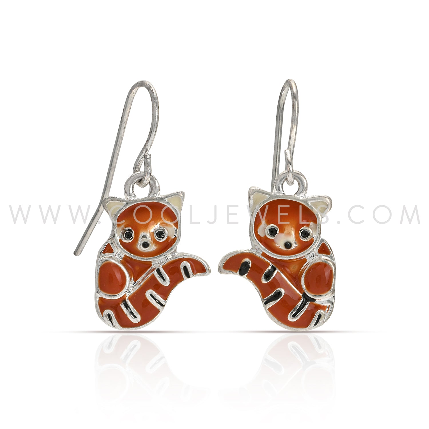 These Red Panda Fish Hook Earrings feature a red panda enamel pendant on a silver fish hook earring for lasting comfort.