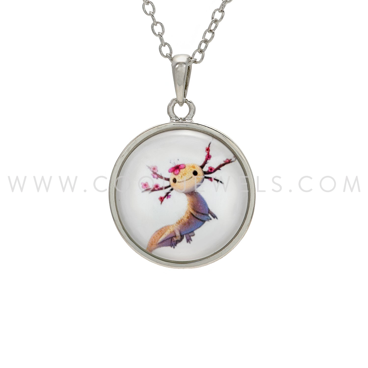 LINK CHAIN NECKLACE WITH ROUND AXOLOTL GLOBE PENDANT