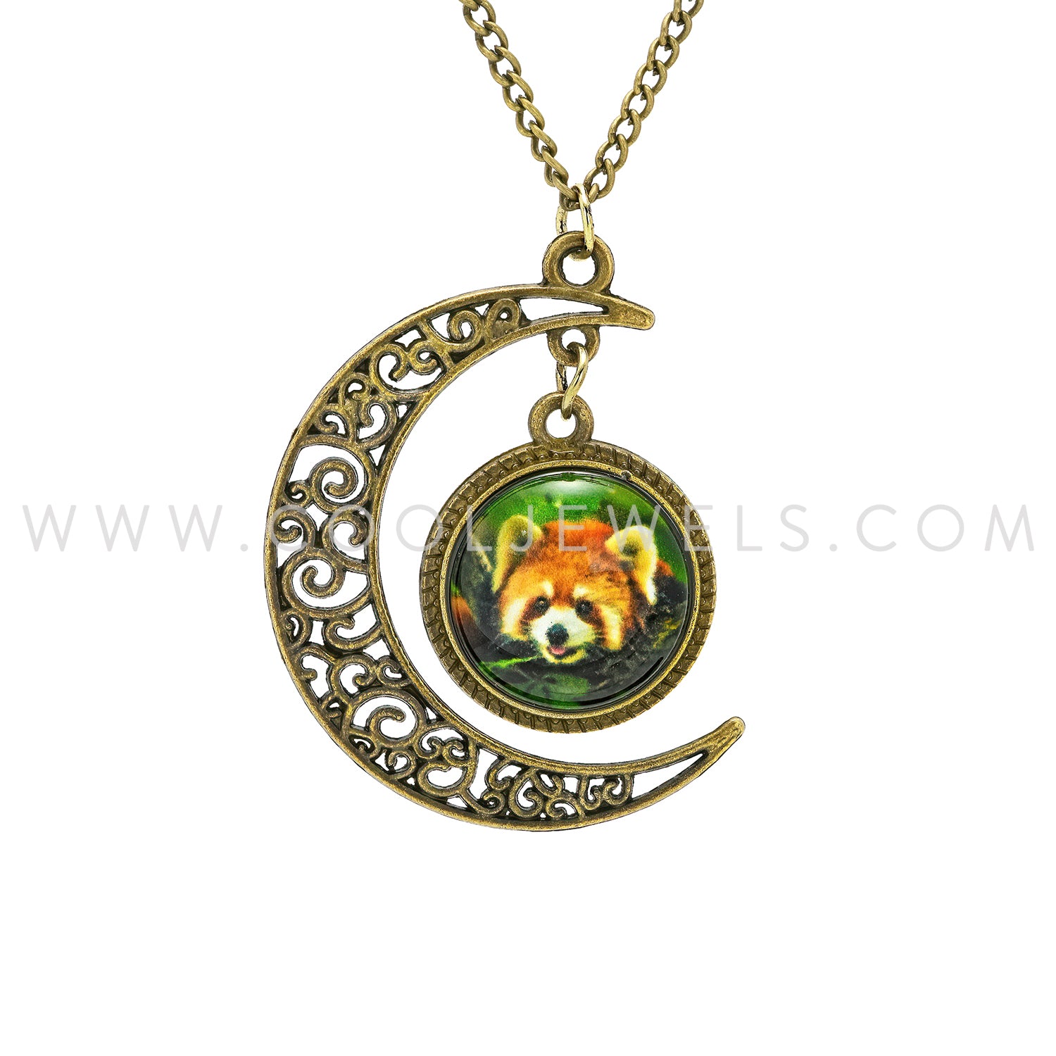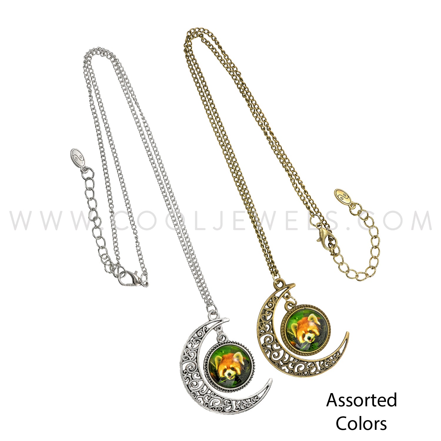 LINK CHAIN NECKLACE WITH MOON & RED PANDA PENDANT - ASSORTMENT