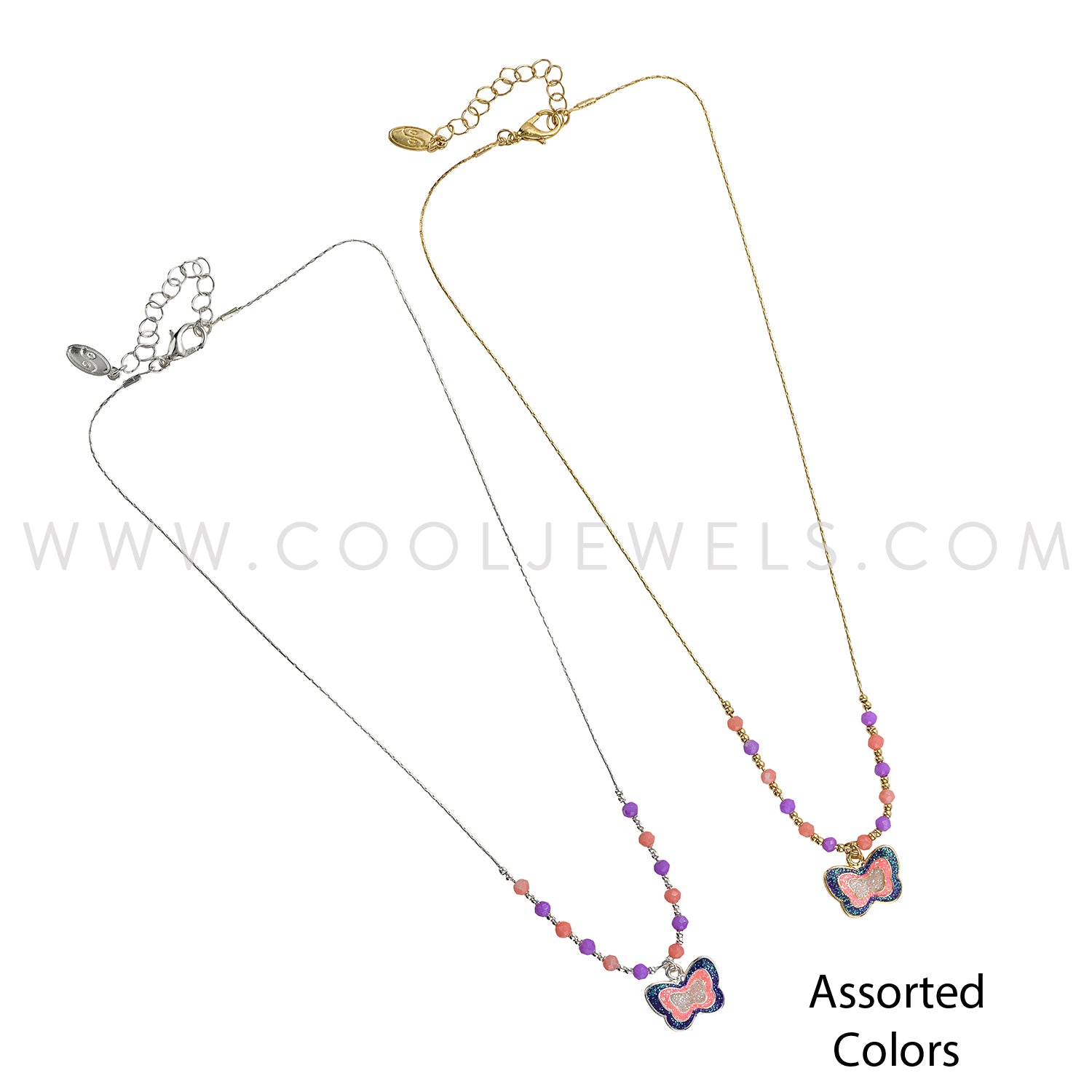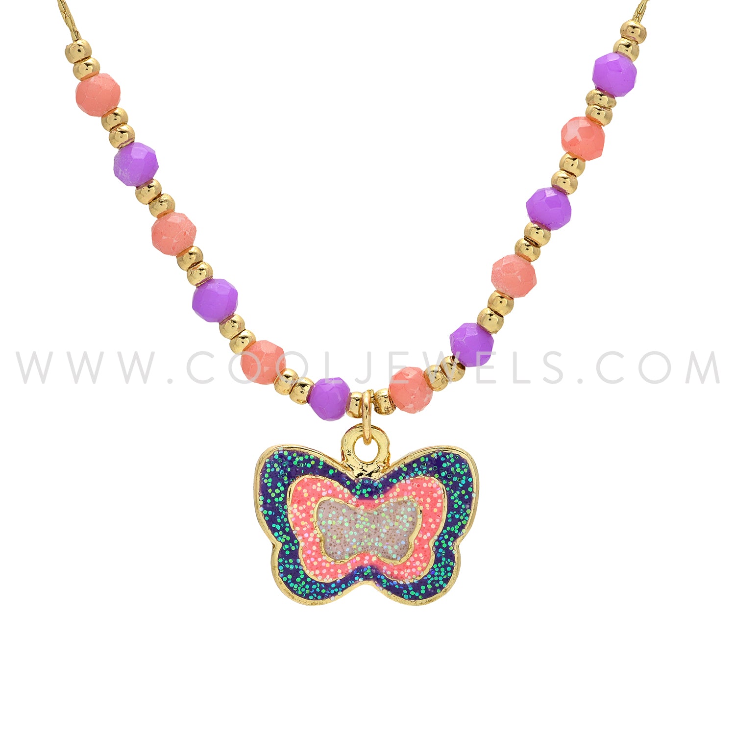CHAIN NECKLACE WITH BEADS & BUTTERFLY PENDANT