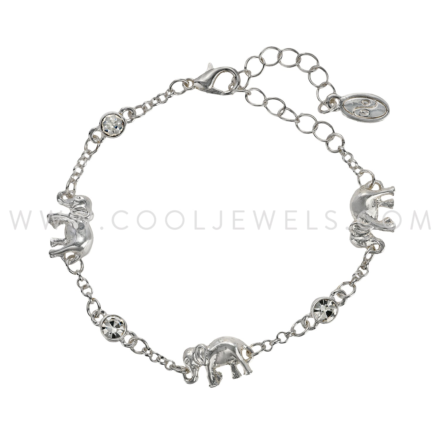 Elephants & Rhinestone Silver Bracelet/Anklets