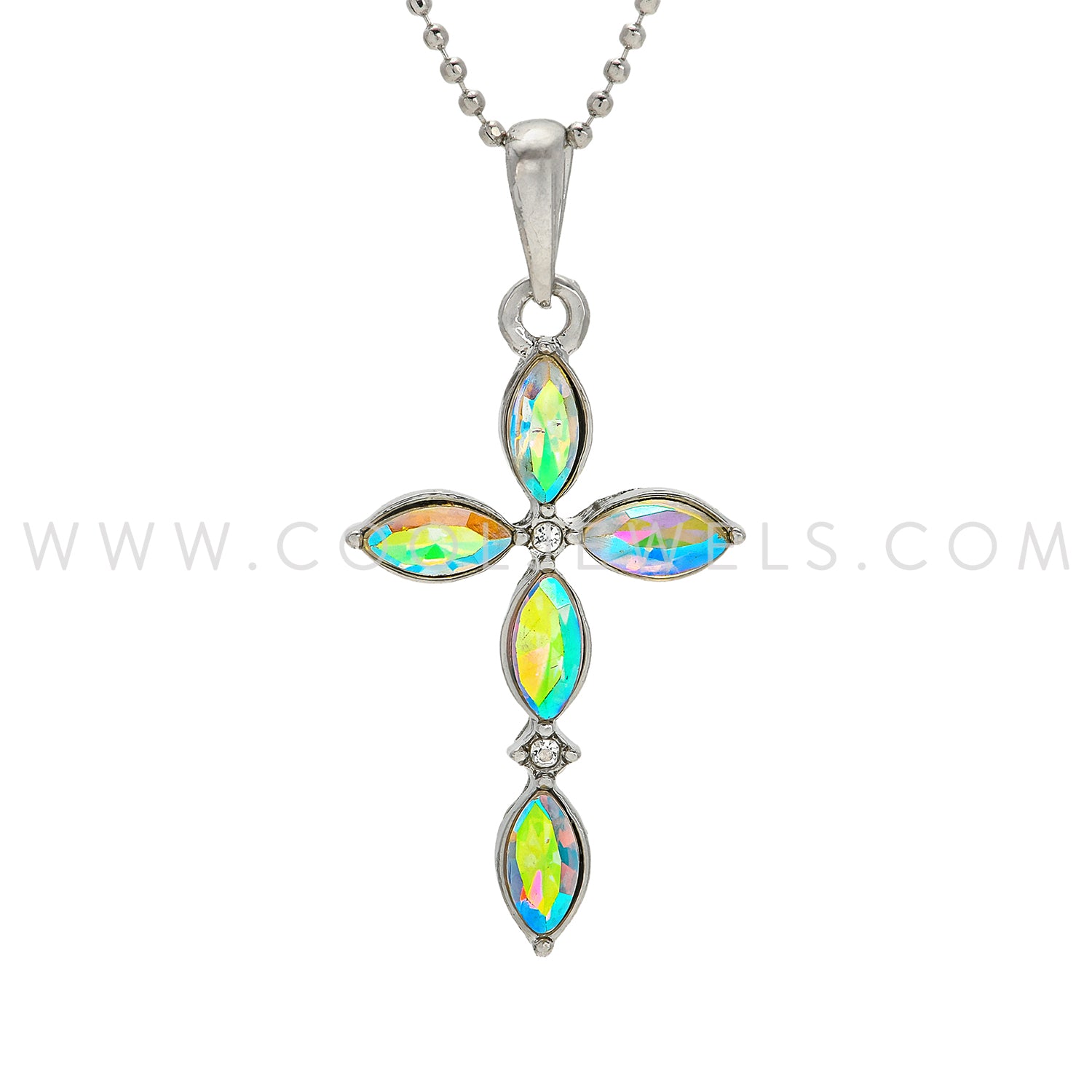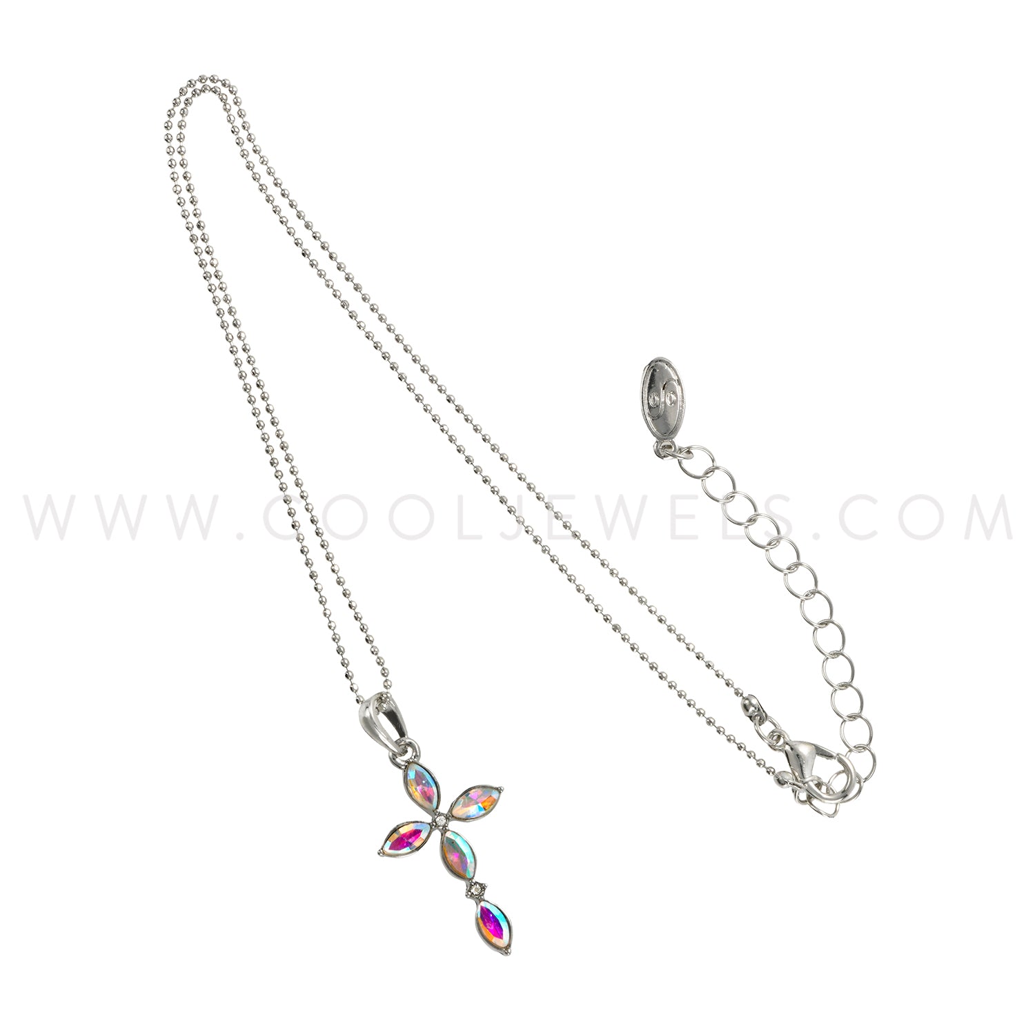 DC BALL CHAIN NECKLACE WITH RHINESTONE CROSS PENDANT