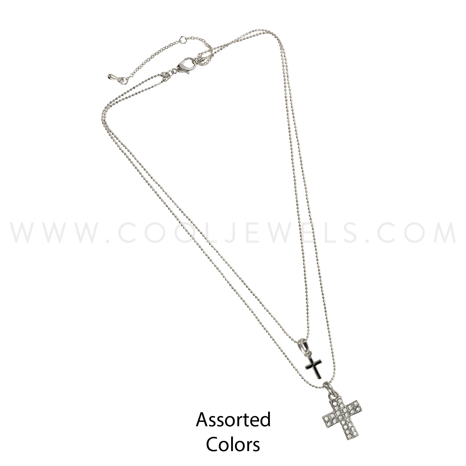 DOUBLE LAYERED CHAIN NECKLACE WITH CROSS PENDANTS