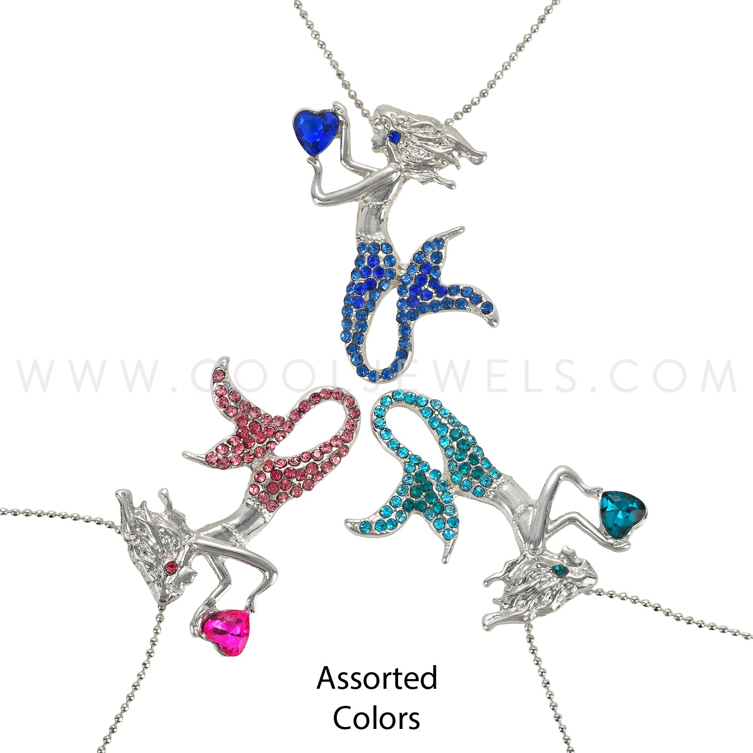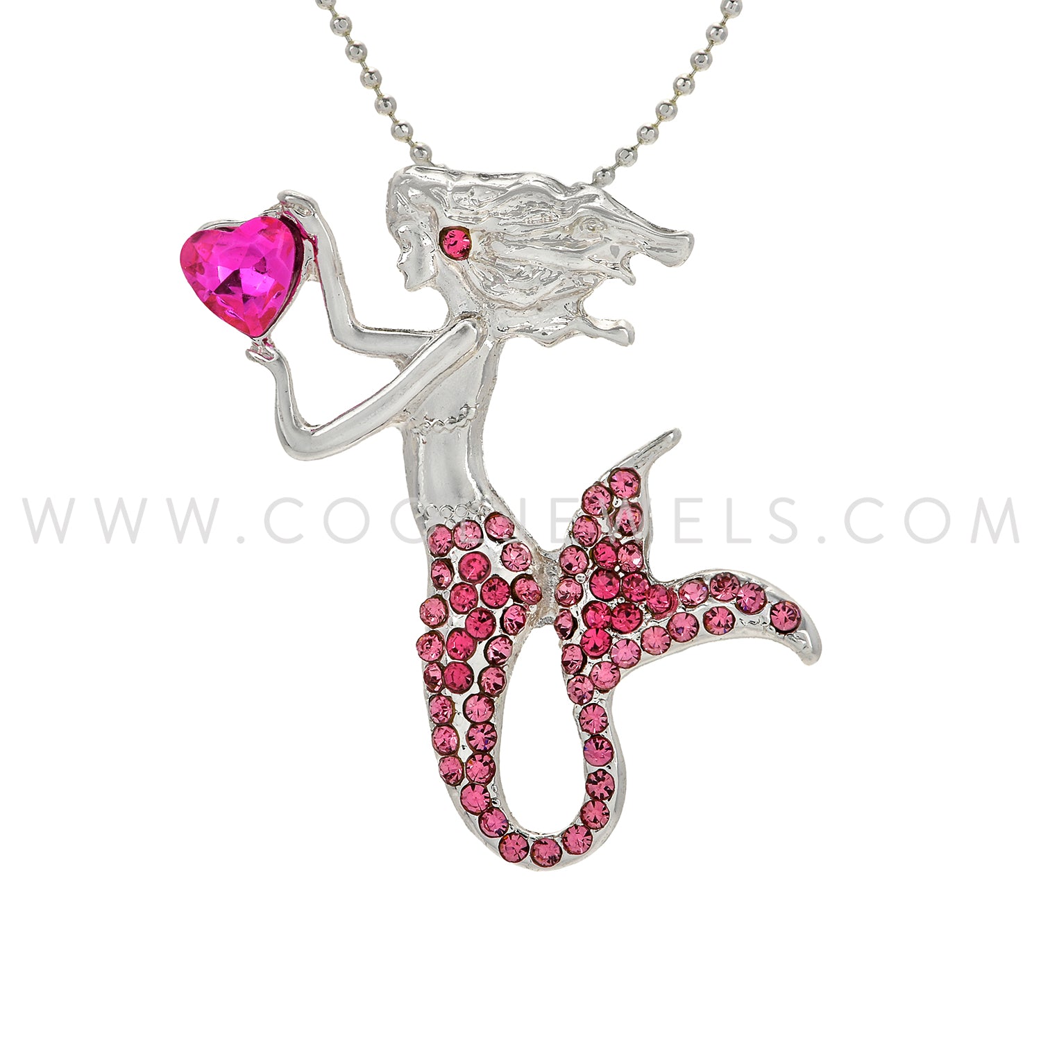 NECKLACE WITH CRYSTAL HEART AND RHINESTONE MERMAID