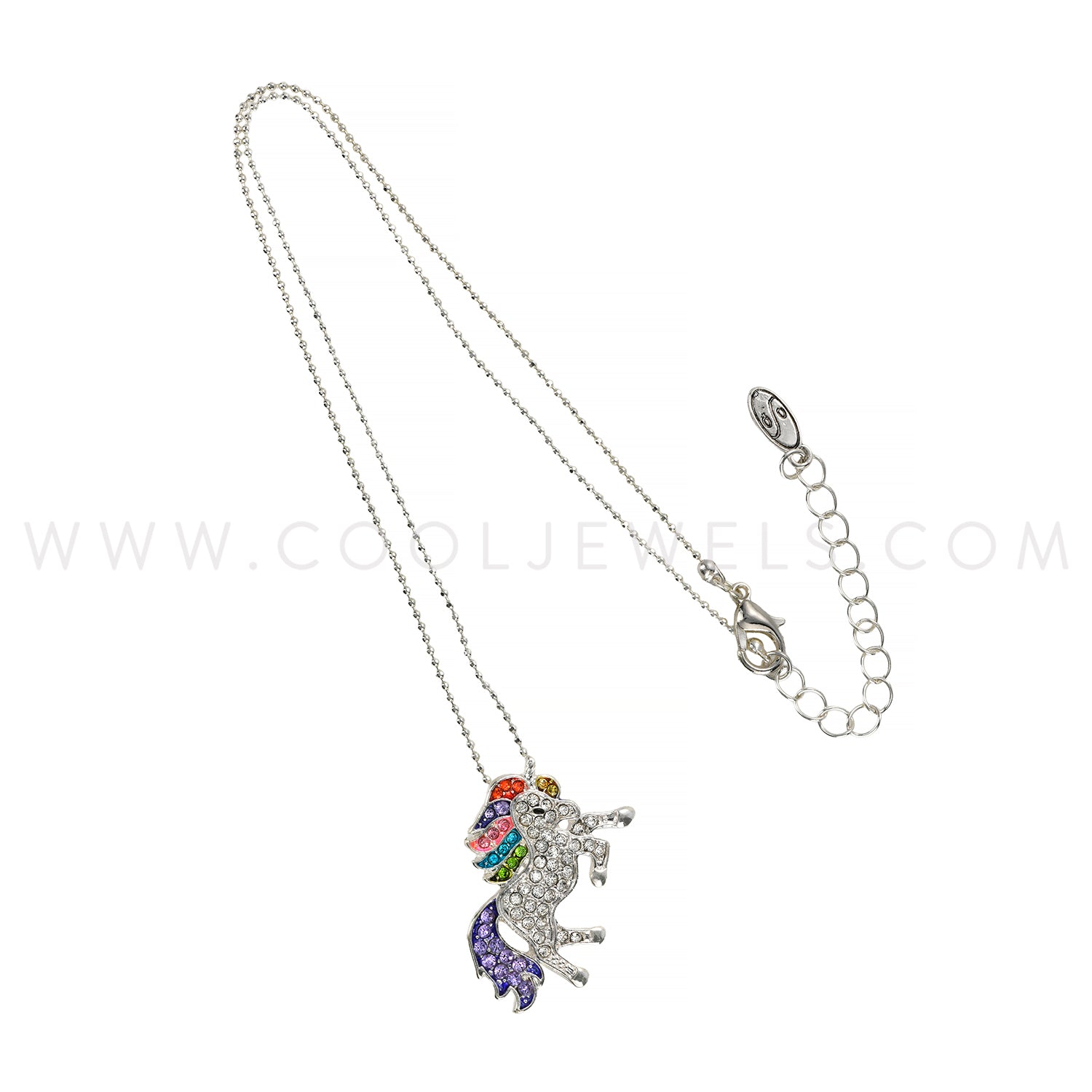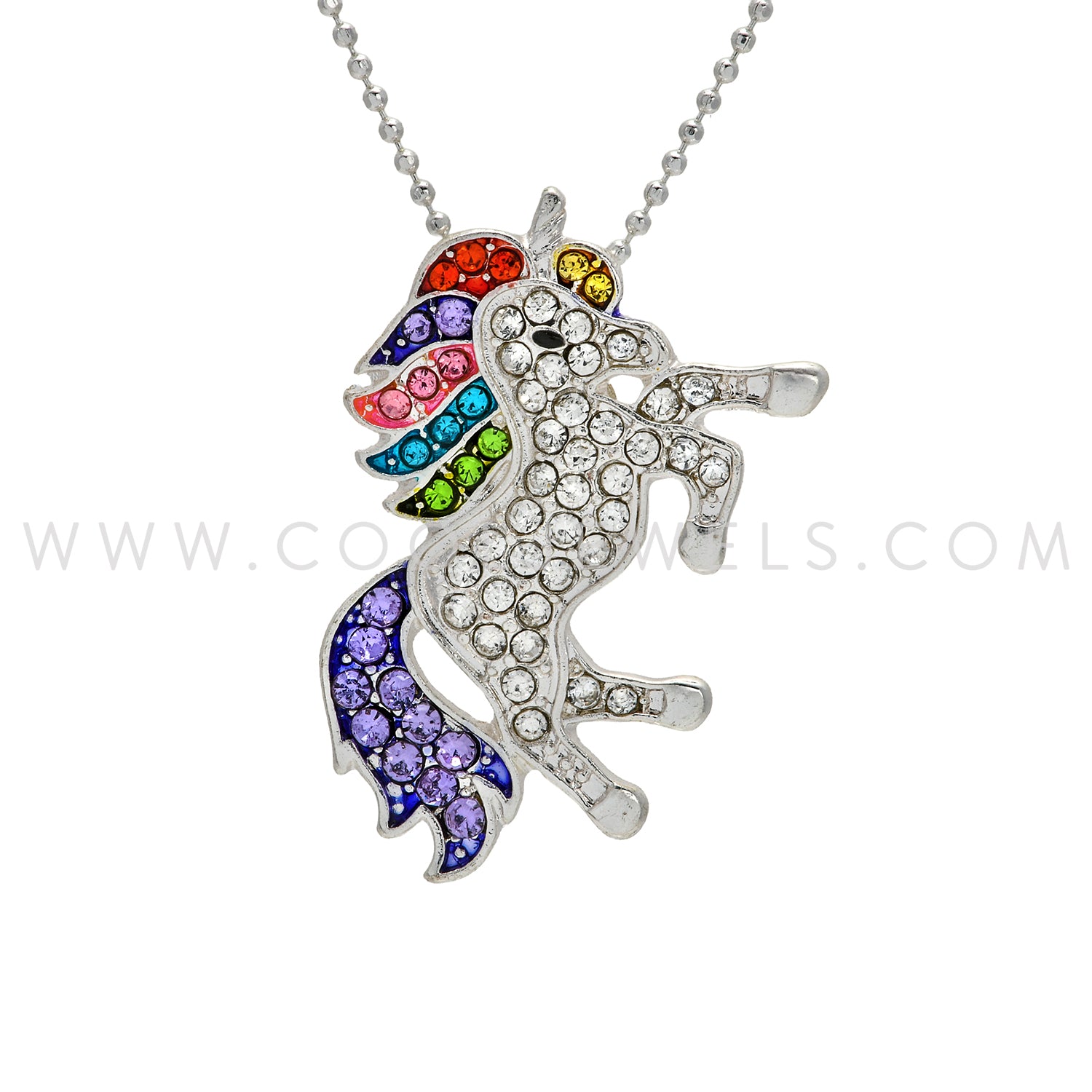 BALL CHAIN NECKLACE WITH RHINESTONE UNICORN