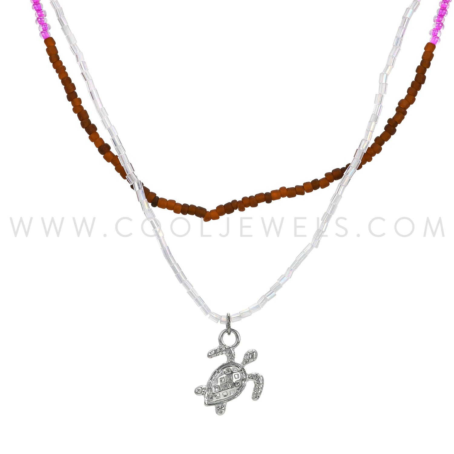 DOUBLE NECKLACE WITH SEED BEADS & TURTLE PENDANT