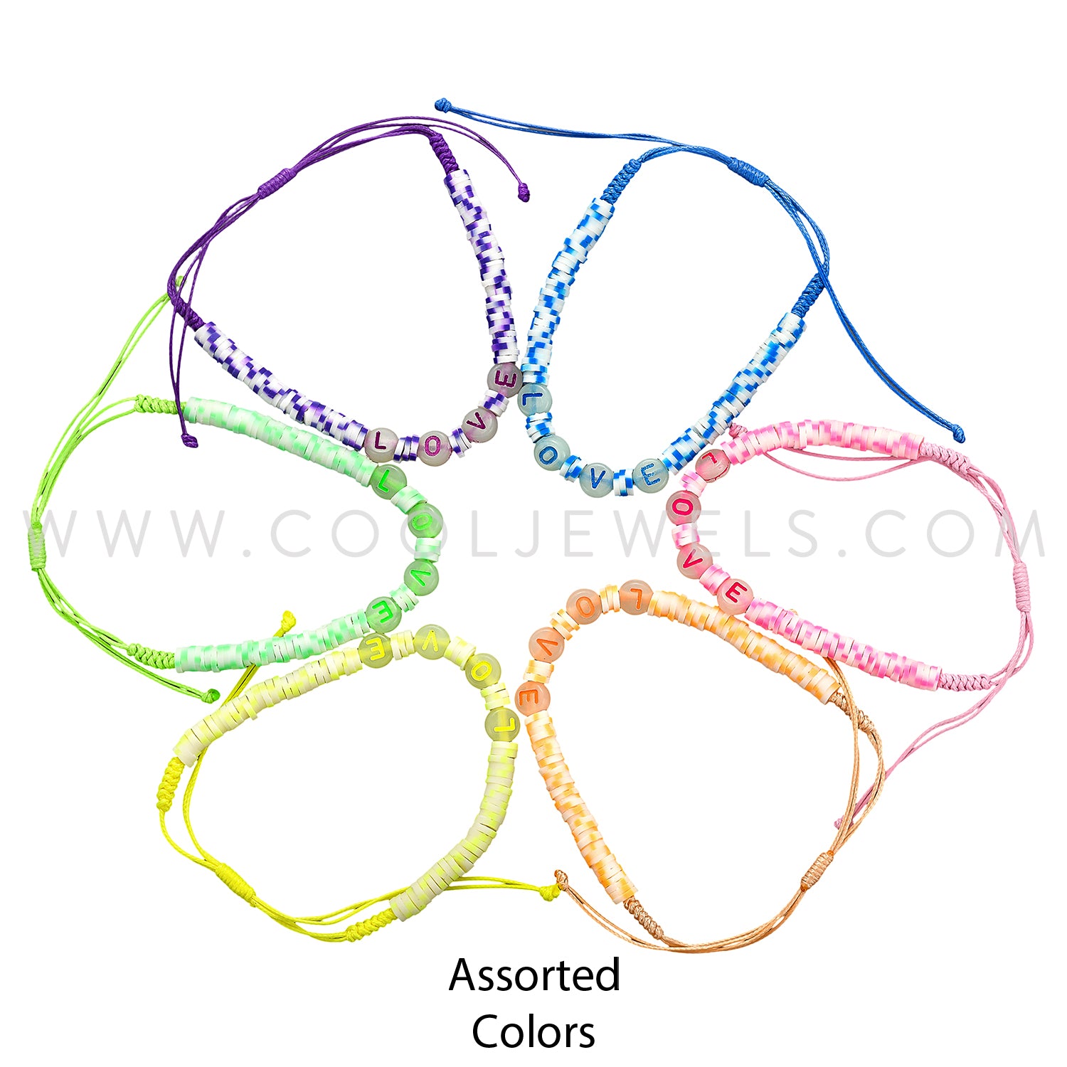 SLIDER BRACELET ANKLET WITH FIMO & GLOW BEADS "LOVE" - ASSORTED