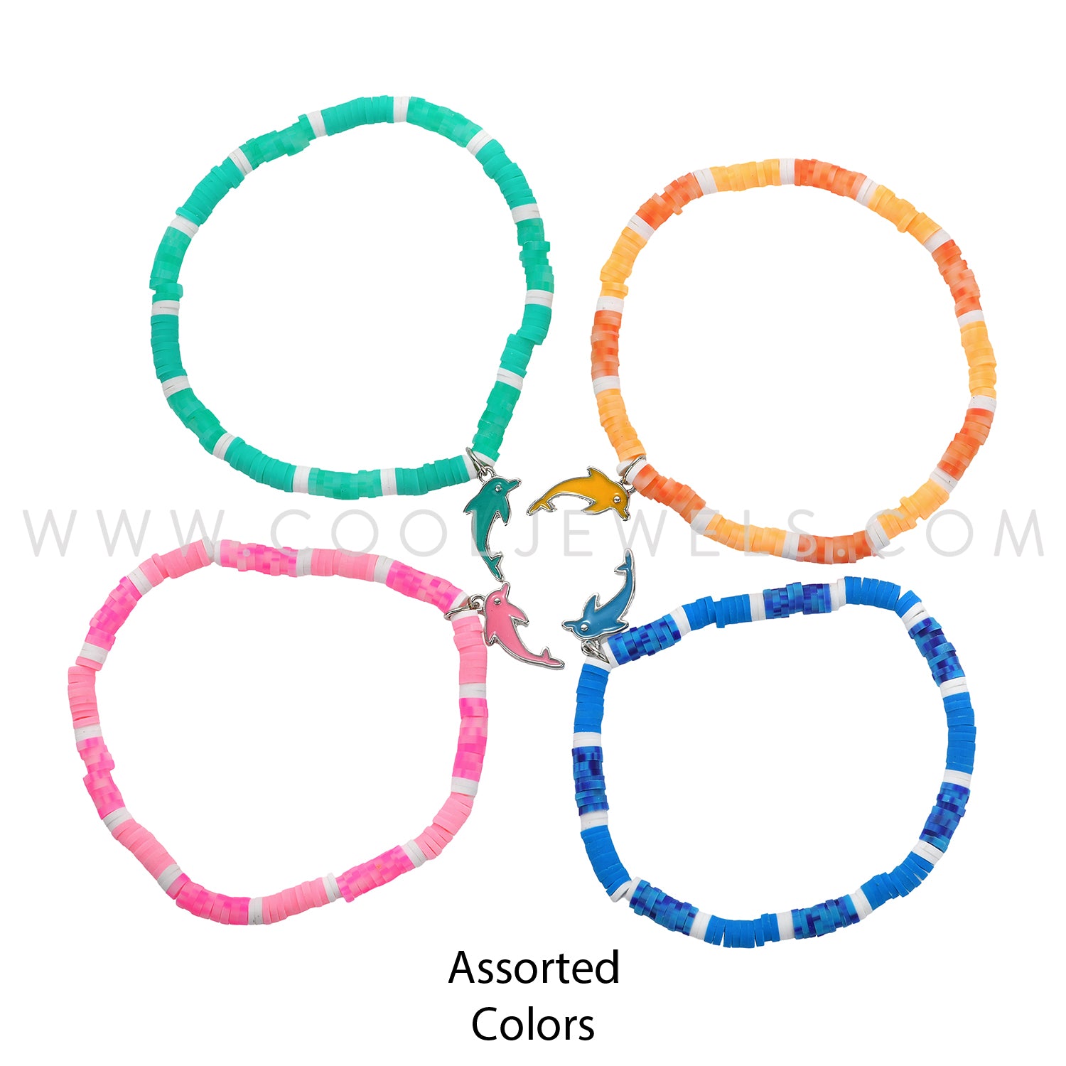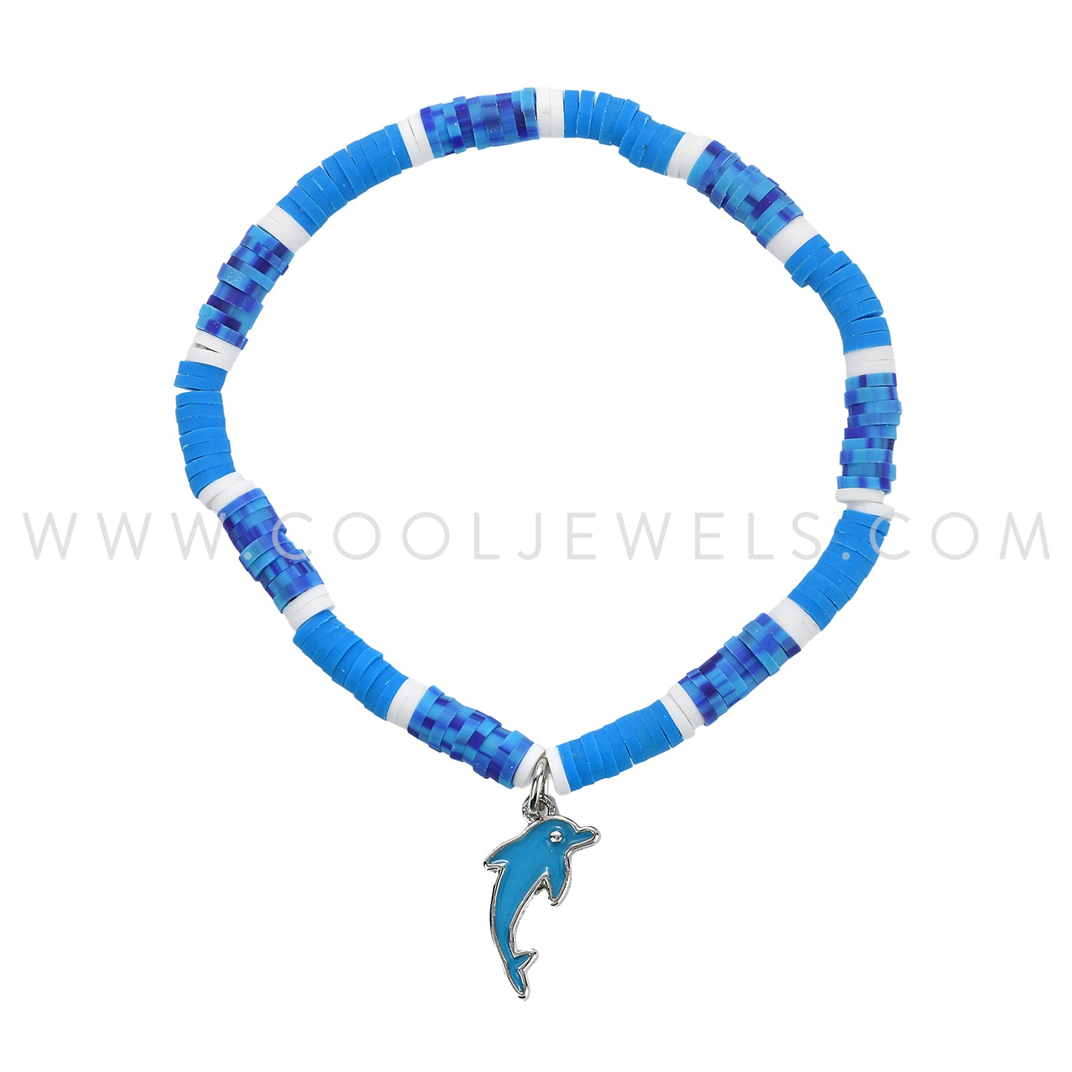 ELASTIC STRETCH BRACELET WITH FIMO AND ENAMEL DOLPHIN ASSORTED - CARDED