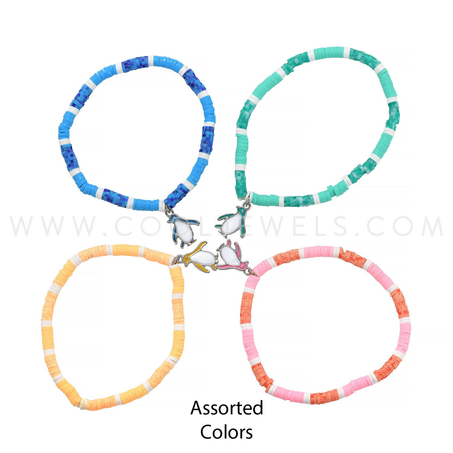 ELASTIC STRETCH BRACELET WITH FIMO AND ENAMEL PENGUIN ASSORTED - CARDED