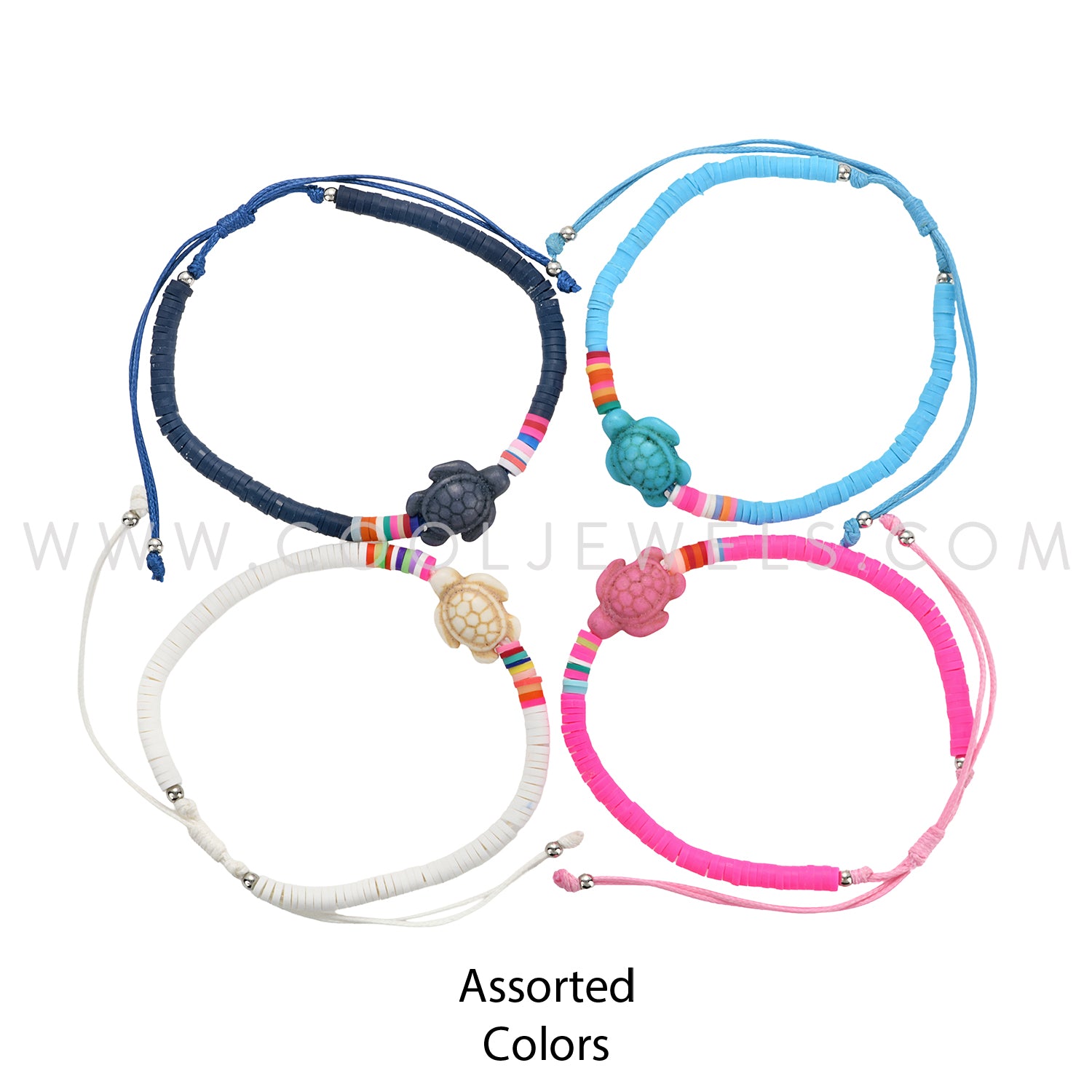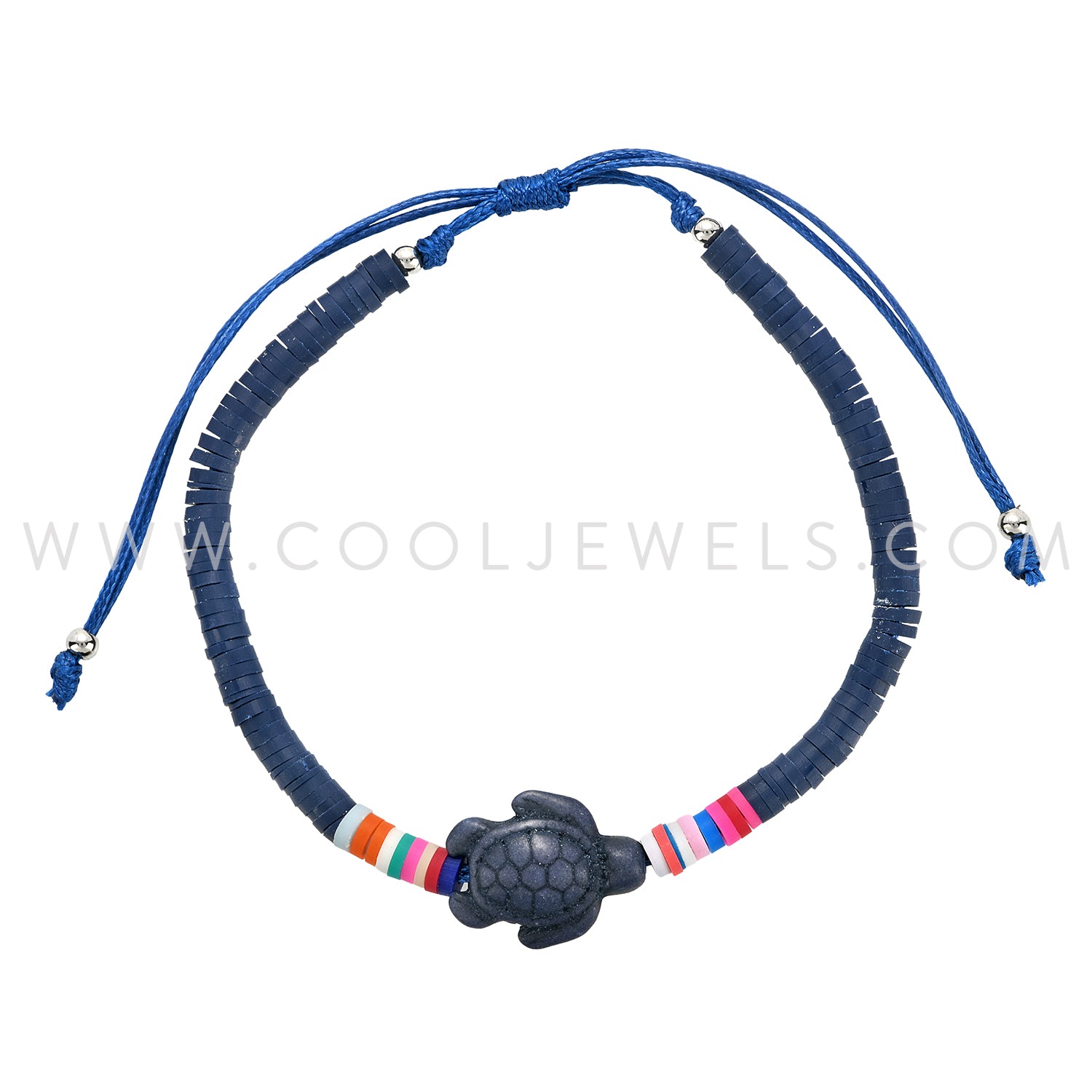 FIMO SLICE SLIDER BRACELET ANKLET WITH STONES & TURTLE PENDANT