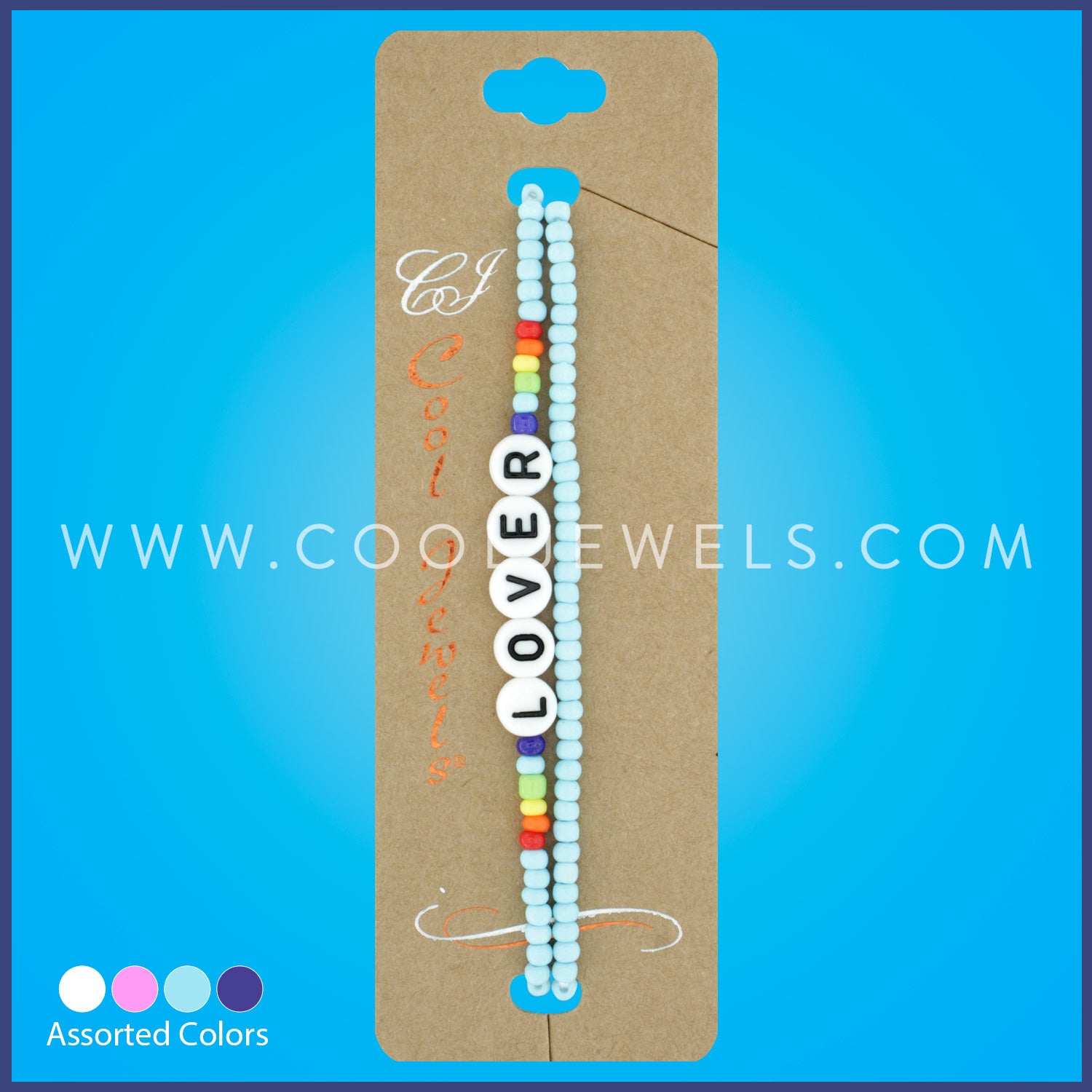 (SET OF 2) BEADED STRETCH BRACELET WITH BLOCK LETTERS "LOVER" ASSORTED - CARDED