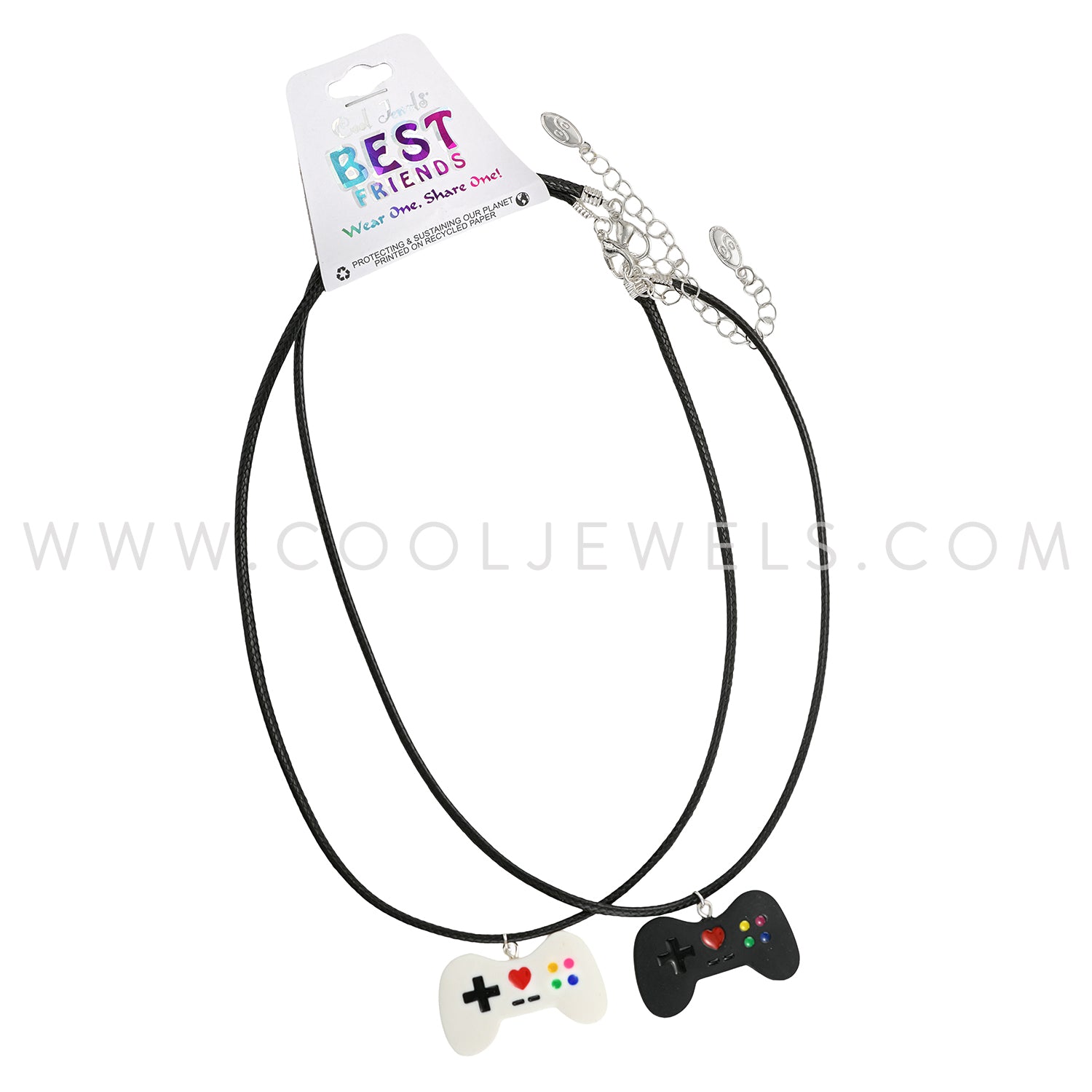 (SET OF 2) BLACK CORD NECKLACE WITH GAME CONTROLLER PENDANTS ASSORTED - CARDED