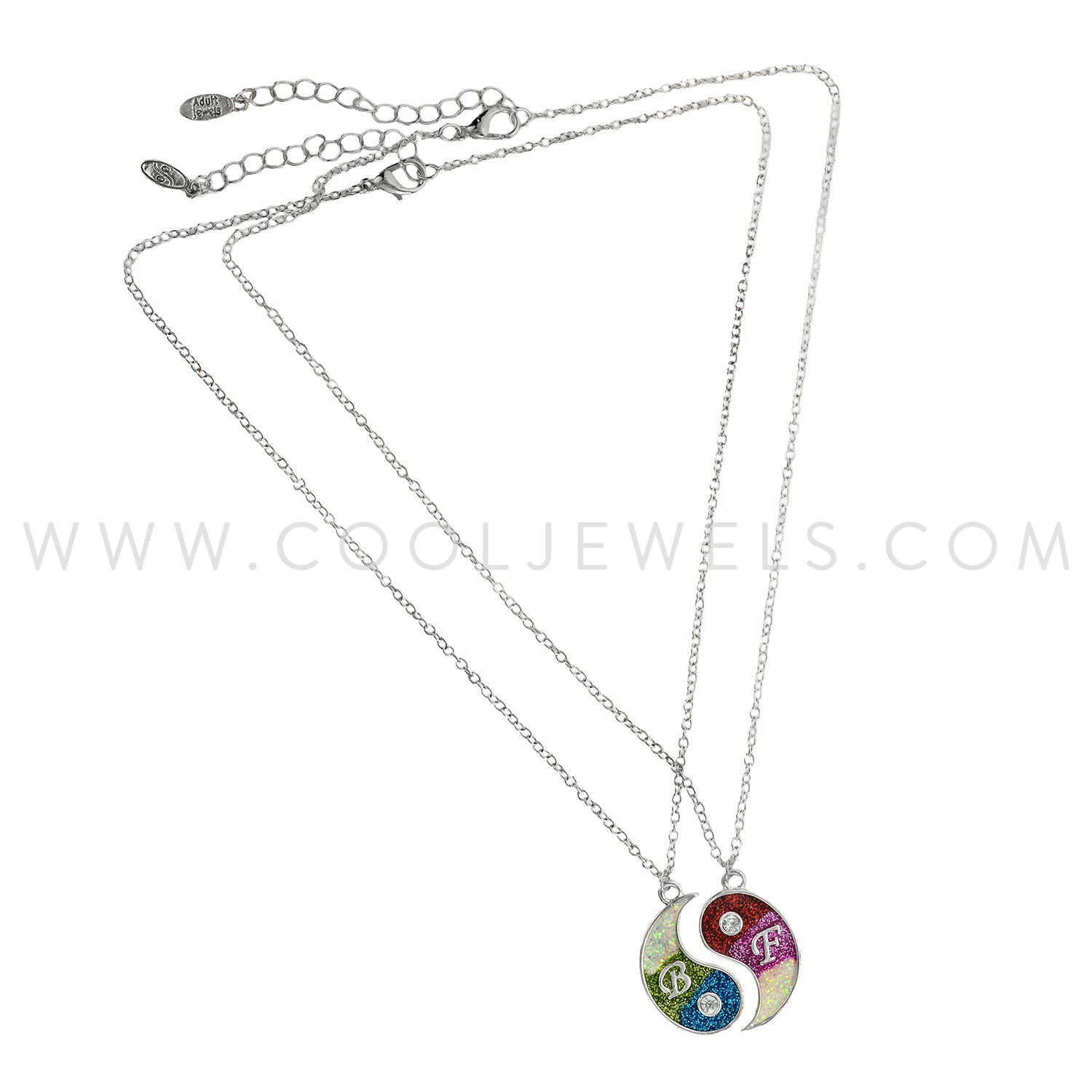 (SET OF 2) LINK CHAIN NECKLACE WITH ROUND BUTTERFLY YIN YANG BEST FRIEND PENDANTS - CARDED
